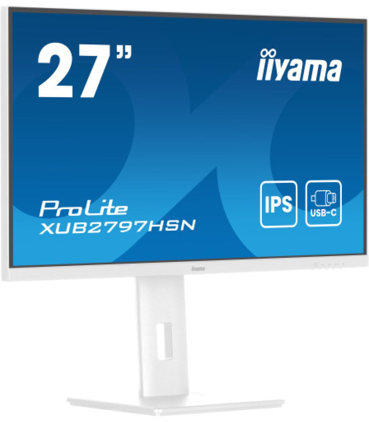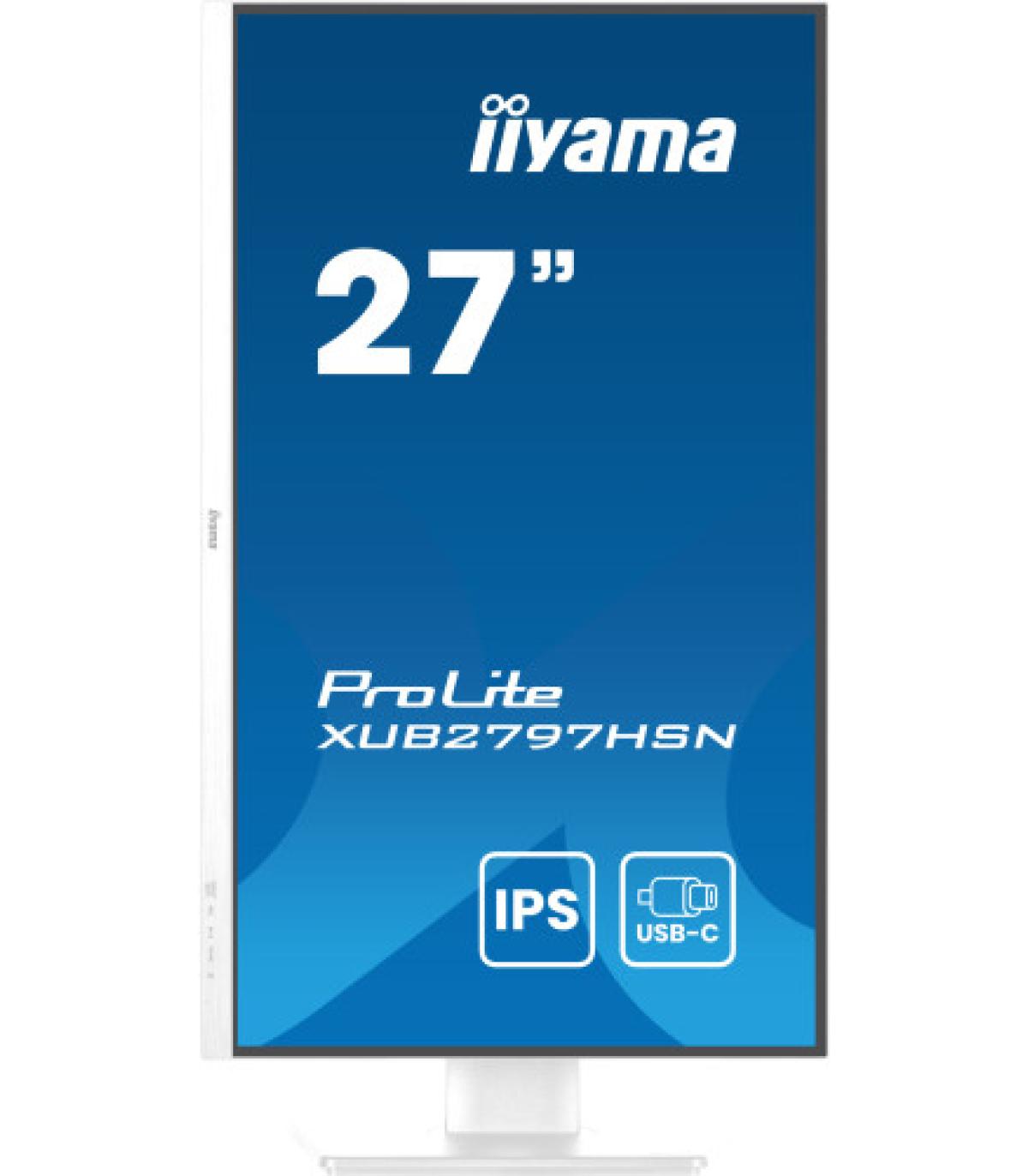iiyama ProLite XUB2797HSN-W2. Diagonal de la pantalla: 68,6 cm (27"), Resolución de la pantalla: 1920 x 1080 Pixeles, Tipo HD: Full HD, Tecnología de visualización: LED, Superficie de la pantalla: Mate, Tiempo de respuesta: 1 ms, Relación de aspecto nativa: 16:9, Ángulo de visión, horizontal: 178°, Ángulo de visión, vertical: 178°. Altavoces incorporados. Conector USB incorporado, Versión de conector USB: 3.2 Gen 1 (3.1 Gen 1). montaje VESA, Ajustes de altura. Color del producto: Blanco