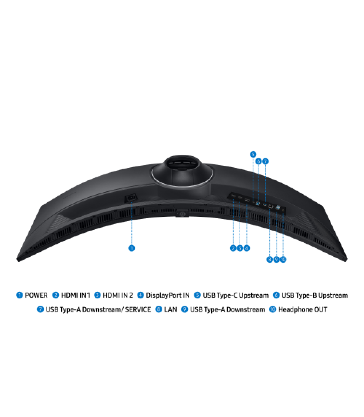 Samsung S95UC. Diagonal de la pantalla: 124,5 cm (49"), Resolución de la pantalla: 5120 x 1440 Pixeles, Tipo HD: Dual QHD, Tecnología de visualización: LCD, Tiempo de respuesta: 5 ms, Relación de aspecto nativa: 32:9, Ángulo de visión, horizontal: 178°, Ángulo de visión, vertical: 178°. Altavoces incorporados. Conector USB incorporado, Versión de conector USB: 3.2 Gen 1 (3.1 Gen 1). montaje VESA, Ajustes de altura. Color del producto: Negro