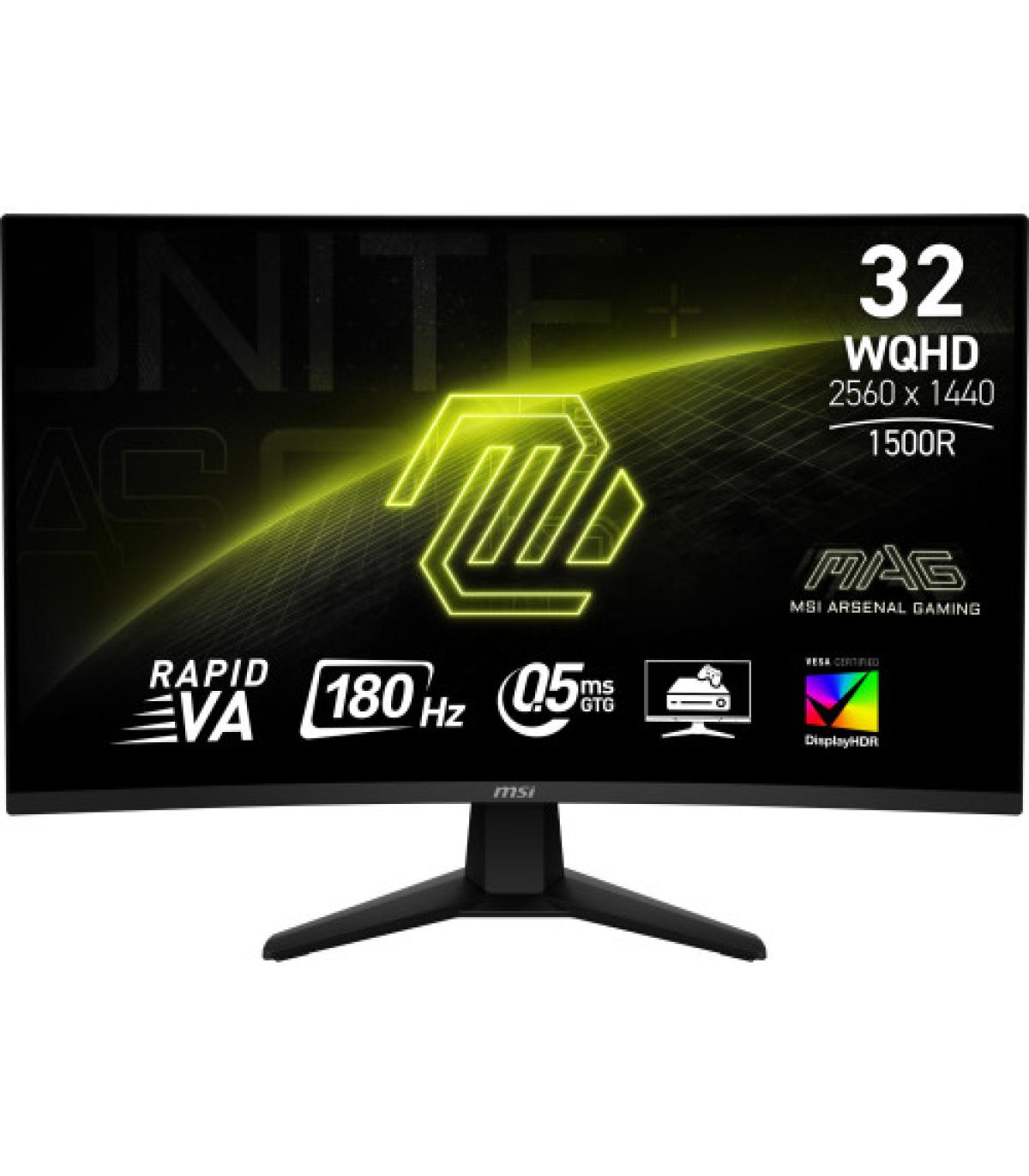 MSI MAG 32CQ6F. Diagonal de la pantalla: 80 cm (31.5"), Resolución de la pantalla: 2560 x 1440 Pixeles, Tipo HD: Wide Quad HD, Tiempo de respuesta: 0,5 ms, Relación de aspecto nativa: 16:9, Ángulo de visión, horizontal: 178°, Ángulo de visión, vertical: 178°. montaje VESA. Color del producto: Negro
