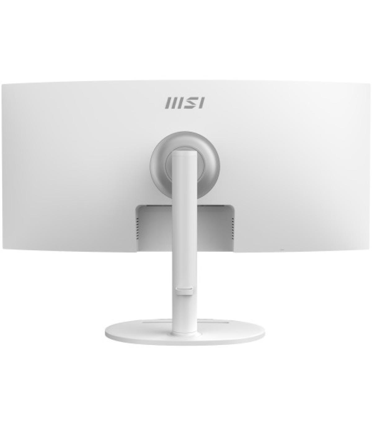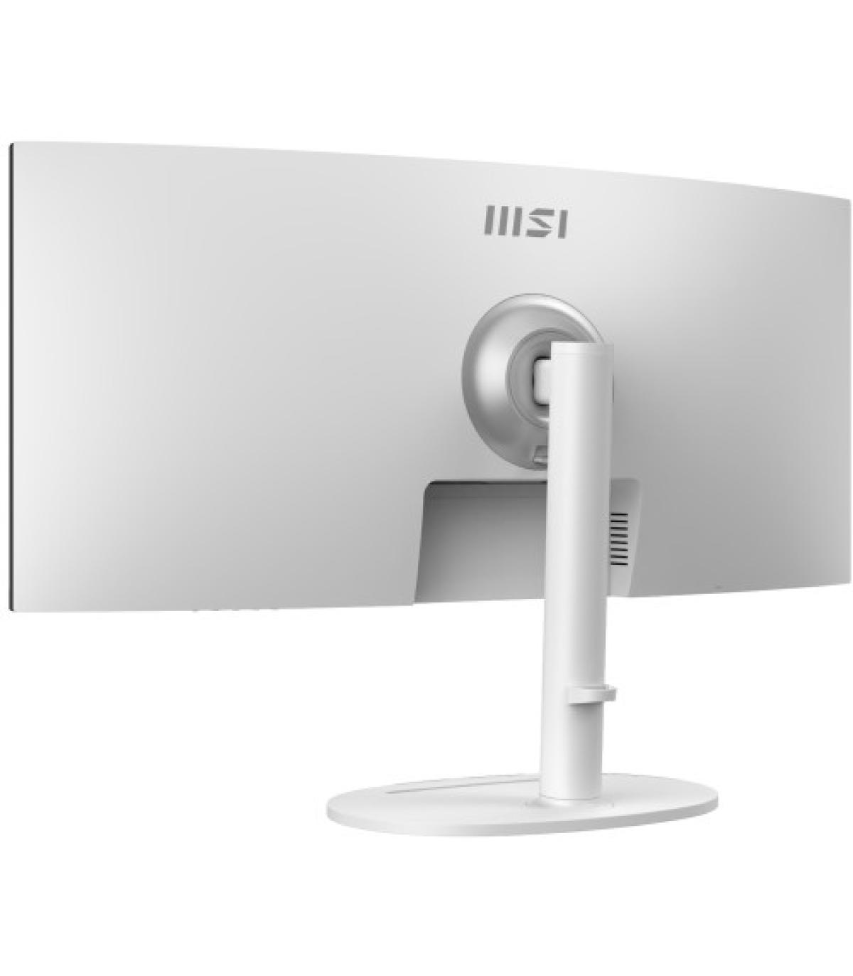 MSI Modern MD342CQPW. Diagonal de la pantalla: 86,4 cm (34"), Resolución de la pantalla: 3440 x 1440 Pixeles, Tipo HD: UltraWide Quad HD, Tiempo de respuesta: 1 ms, Relación de aspecto nativa: 21:9, Ángulo de visión, horizontal: 178°, Ángulo de visión, vertical: 178°. Altavoces incorporados. Conector USB incorporado. montaje VESA, Ajustes de altura. Color del producto: Blanco