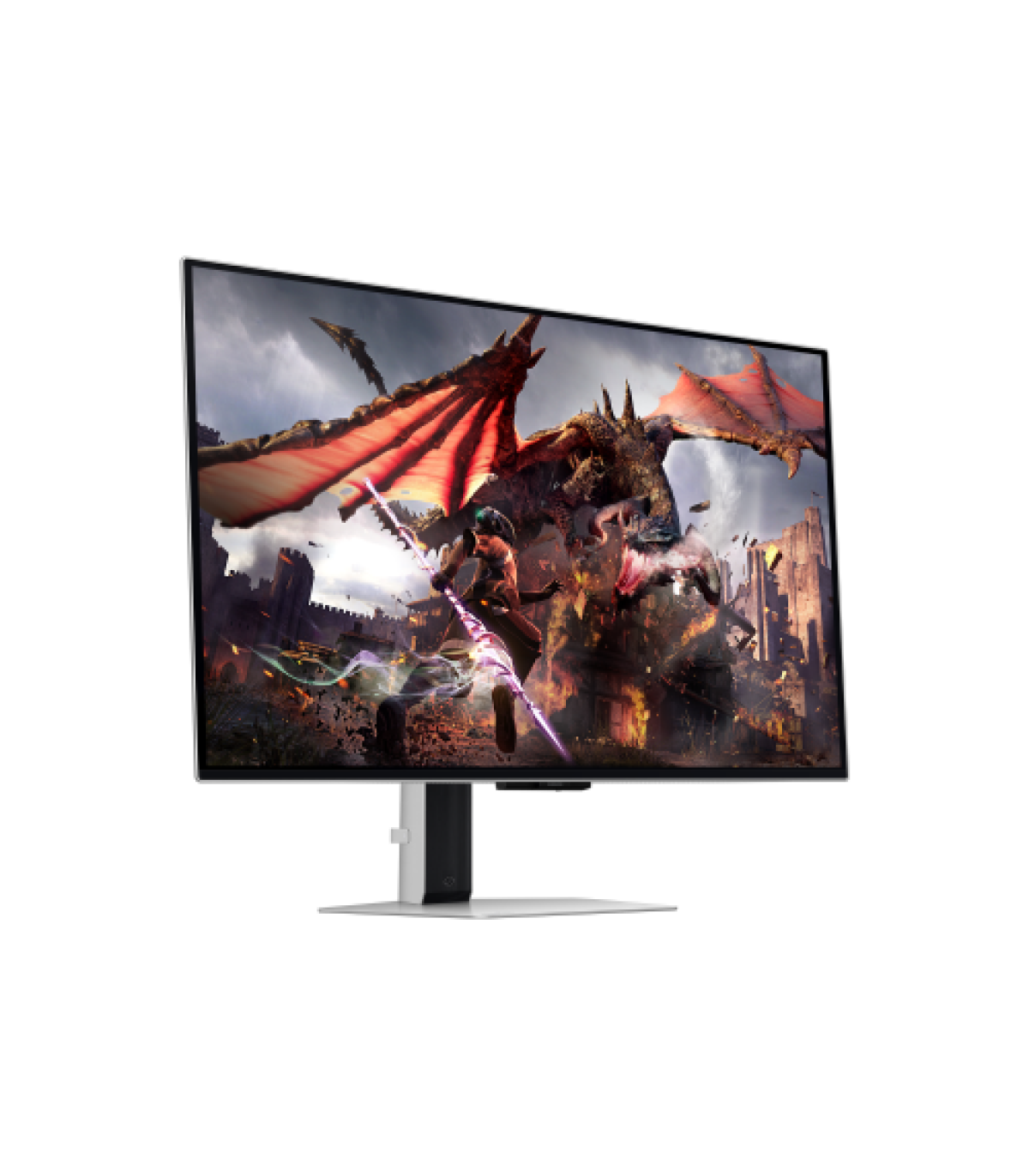 Samsung G80SD. Diagonal de la pantalla: 81,3 cm (32"), Resolución de la pantalla: 3840 x 2160 Pixeles, Tipo HD: 4K Ultra HD, Tecnología de visualización: OLED, Tiempo de respuesta: 0,03 ms, Relación de aspecto nativa: 16:9, Ángulo de visión, horizontal: 178°, Ángulo de visión, vertical: 178°. Altavoces incorporados. Conector USB incorporado, Versión de conector USB: 2.0 / 3.2 Gen 1 (3.1 Gen 1). montaje VESA, Ajustes de altura. Color del producto: Plata