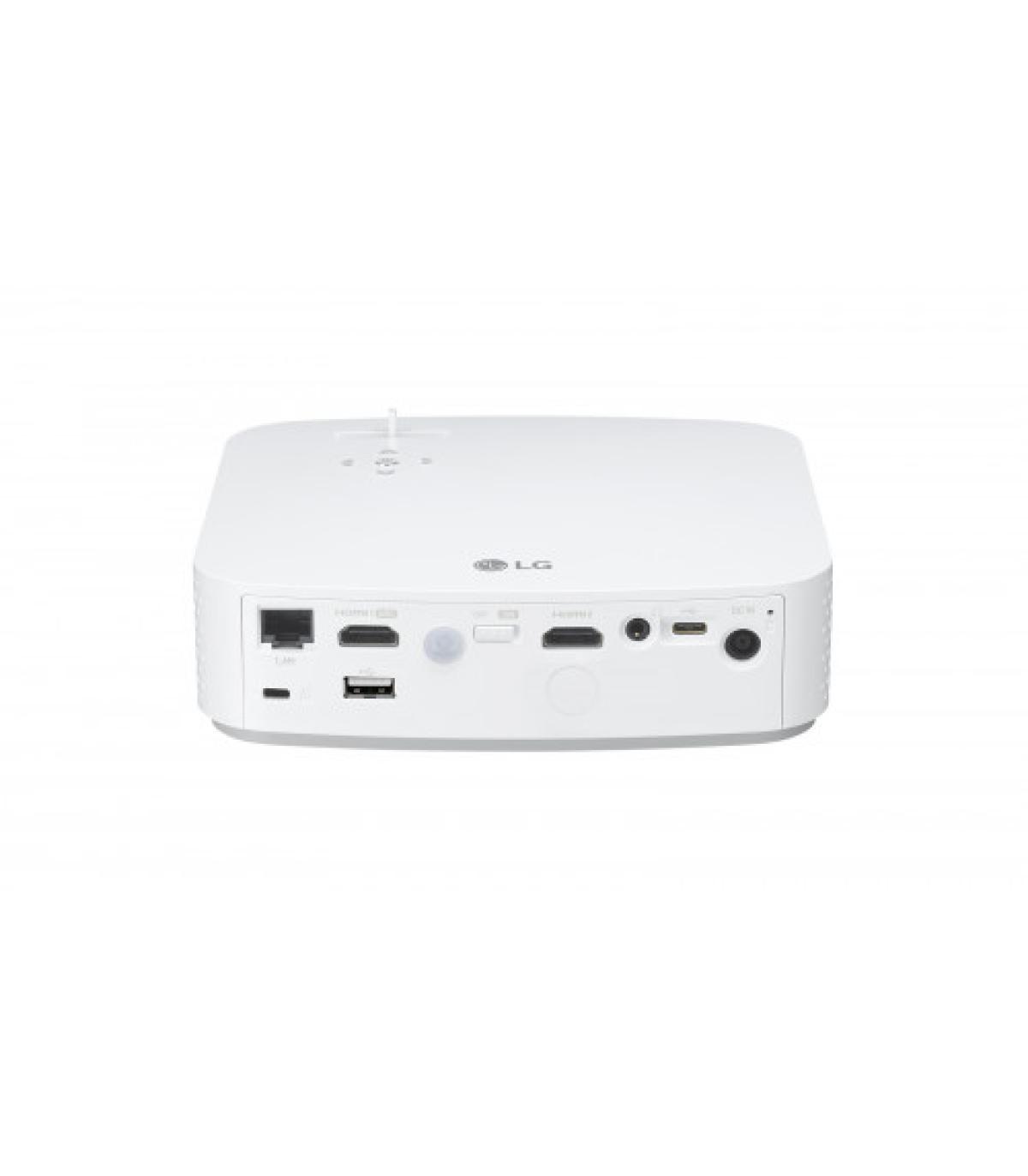 Experiencia inmersiva Full HDEl primer Minibeam Full HD con batería integrada reproduce tus contenidos con colores nítidos y vivos superando a los proyectores HD convencionalesCorreción automática de pantallaEl ajuste trapezoidal automático calibra y corrige la distorsión de la imagen en segundos para garantizar una visualización óptimaSumérgete en los contenidosDisfruta del contenido más realista e impresionante en una pantalla de hasta 100 pulgadasFácil y sencilloLa exclusiva plataforma Smart TV de LG es fácilmente configurable y te permite acceder a internet y todo tipo de contenidosLigero y compactoSu diseño compacto te permite llevarlo a cualquier parte y guardarlo fácilmente en un bolso o mochilaTriple WirelessSe conecta de manera inalámbrica con el Smartphone, puede emparejarse por Bluetooth con diferentes dispositivos de audio e incorpora batería integrada. Olvídate de los cables.Carga y reproducción de pantalla a la vezEl puerto USB tipo C permite replicar en el proyector el contenido del ordenador, tablet o Smarpthone mientras se carga el dispositivo al mismo tiempo con un solo cableMayor vida útilLa potente tecnología LED reproduce colores vivos y reales y dura hasta 30,000 horas. Si vieses vídeos durante 8 horas al día, podrías utilizarlo durante 10 años seguidos.