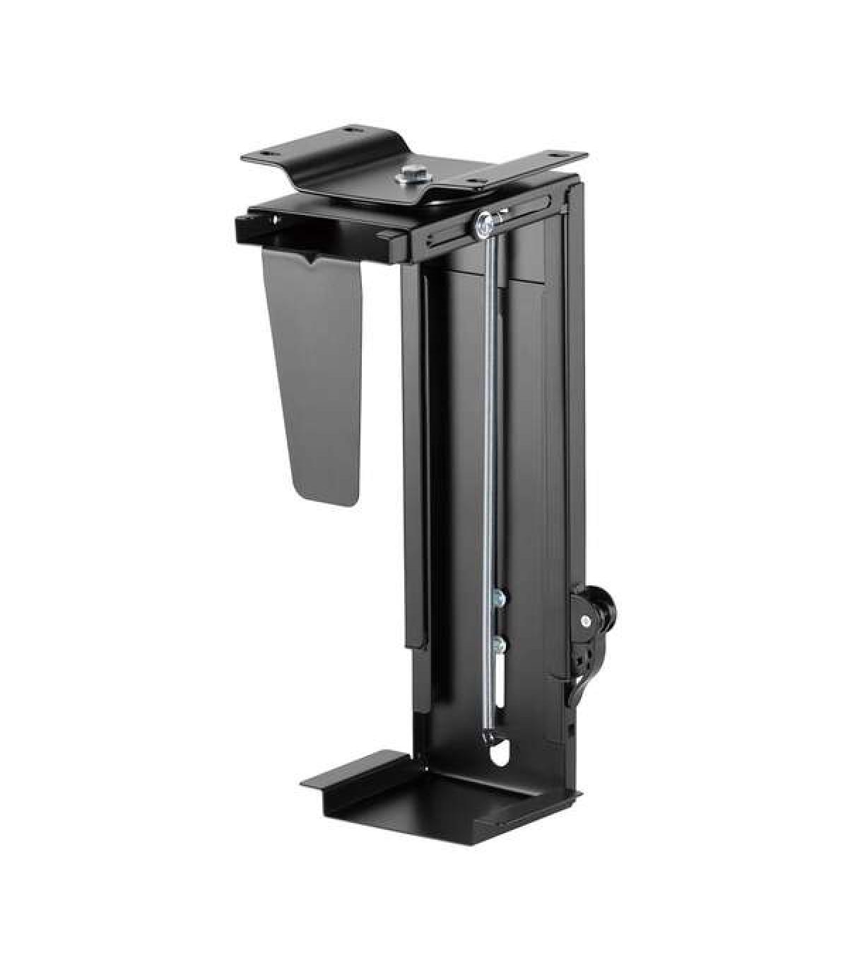 -Soporte giratorio y altura personalizable para CPU por debajo de escritorio con mango de bloqueo fácil.