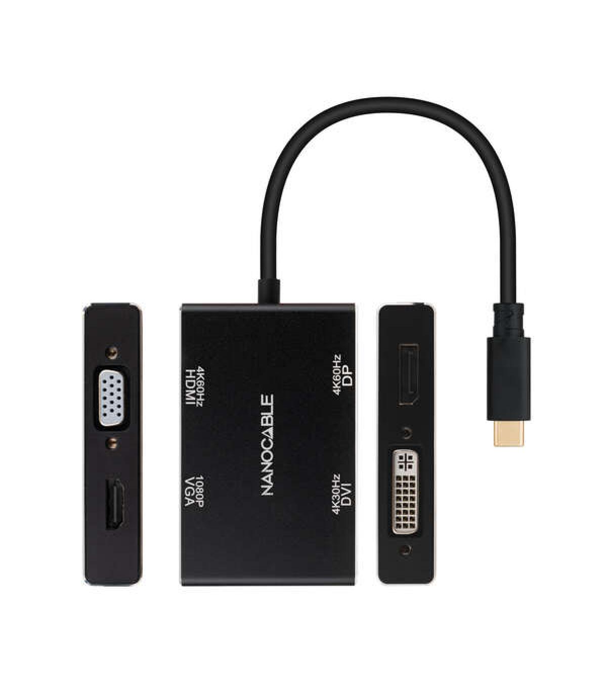 Nanocable Conversor USB-C/M a HDMI/H + DVI/H + DP/H + VGA/H - 10cm