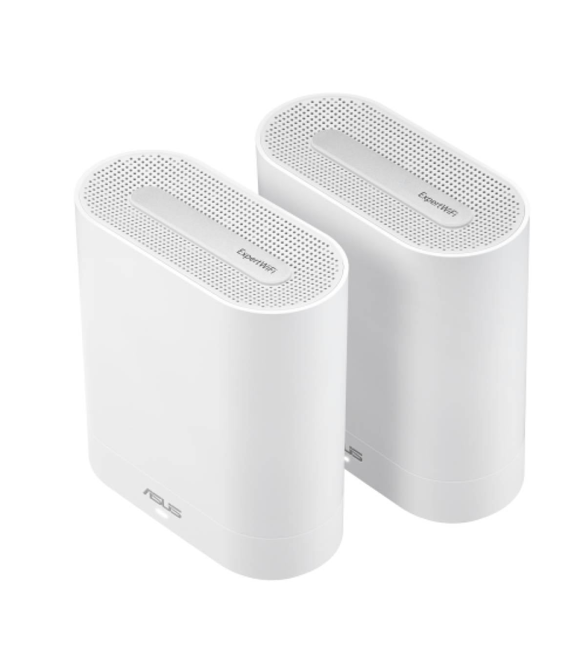 ASUS EBM68(2PK) – Expert Wifi. Color del producto: Blanco, Tipo de antena: Interno, Tipo de producto: Enrutador de malla. Banda Wi-Fi: Tribanda (2,4 GHz/5 GHz/5 GHz), Estándar Wi-Fi: Wi-Fi 6 (802.11ax), Tasa de transferencia de datos WLAN (máx.): 4804 Mbit/s. Frecuencia del procesador: 1,7 GHz, Memoria interna: 1000 MB, Memoria Flash: 256 MB. Voltaje de entrada de adaptador AC: 110 - 240 V, Frecuencia de adaptador AC: 50 - 60 Hz, Voltaje de salida de adaptador AC: 12 V. Ancho: 167 mm, Profundidad: 77 mm, Altura: 186 mm