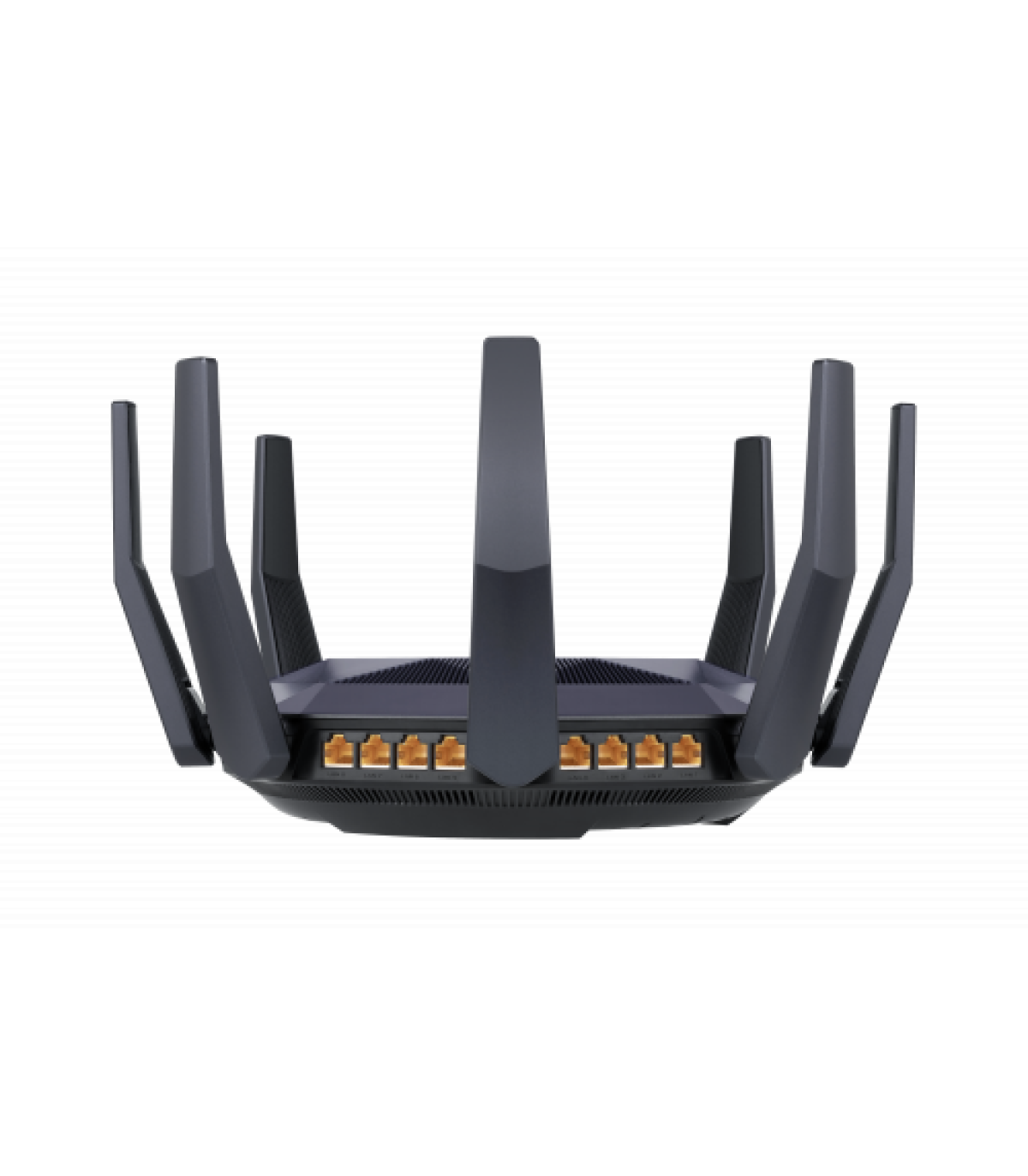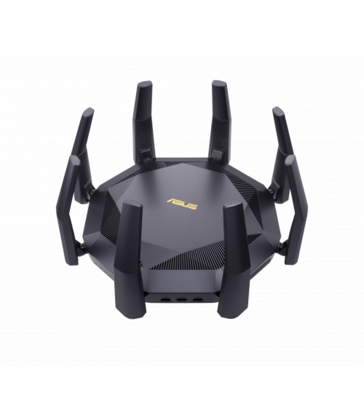 ASUS RT-AX89X AX6000 AiMesh. Banda Wi-Fi: Doble banda (2,4 GHz / 5 GHz), Estándar Wi-Fi: Wi-Fi 6 (802.11ax), Wi-Fi estándares: 802.11a,802.11b,802.11g,Wi-Fi 4 (802.11n),Wi-Fi 5 (802.11ac),Wi-Fi 6 (802.11ax). Tipo de interfaz Ethernet LAN: Ethernet, Estándares de red: IEEE 802.11a,IEEE 802.11ac,IEEE 802.11ax,IEEE 802.11b,IEEE 802.11g,IEEE 802.11n. Tipo de producto: Router de sobremesa, Color del producto: Negro. Tipo de antena: Externo. Frecuencia del procesador: 2200 MHz, Memoria Flash: 256 MB