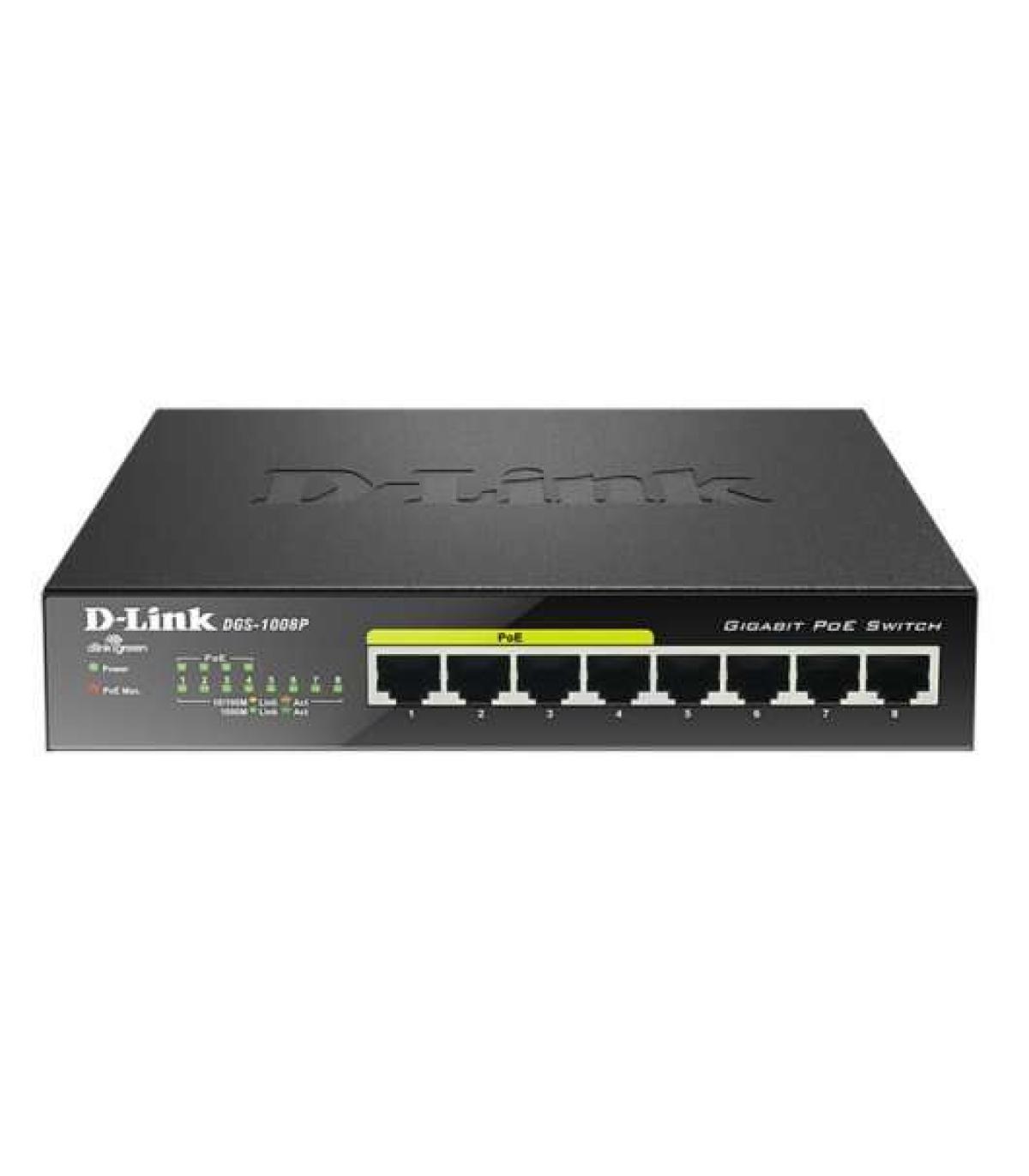 El Switch de sobremesa Gigabit PoE DGS-1008P es una solución económica para las pymes y las oficinas domésticas, que, gracias a las ventajas de la tecnología PoE (Power over Ethernet), permite que los usuarios puedan conectar los dispositivos, como puntos de acceso inalámbricos, cámaras de red o teléfonos IP, directamente con los cables de red. El DGS-1008P dispone de puertos Gigabit que ofrecen la máxima velocidad, e integra la tecnología Green Ethernet de D-Link para ahorrar energía cuando no se está utilizando el Switch. Su diseño sin ventilador lo hace completamente silencioso, por lo que es ideal para oficinas, bibliotecas o salas de reunión.