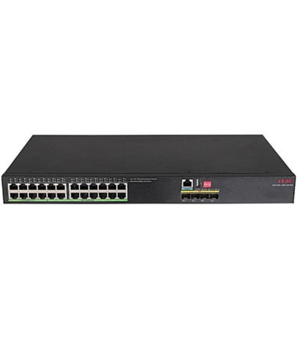 H3C LS-IE4320-28S-HPWR. Tipo de interruptor: Gestionado. Puertos tipo básico de conmutación RJ-45 Ethernet: Gigabit Ethernet (10/100/1000), Cantidad de puertos básicos de conmutación RJ-45 Ethernet: 24, Número de módulos SFP+ instalados: 4. Tabla de direcciones MAC: 16000 entradas, Capacidad de conmutación: 128 Gbit/s. Estándares de red: IEEE 802.1AX, IEEE 802.1D, IEEE 802.1Q, IEEE 802.1ag, IEEE 802.1p, IEEE 802.1s, IEEE 802.1w, IEEE.... Voltaje de entrada DC: 54 - 57 V. Energía sobre Ethernet (PoE). Montaje en rack