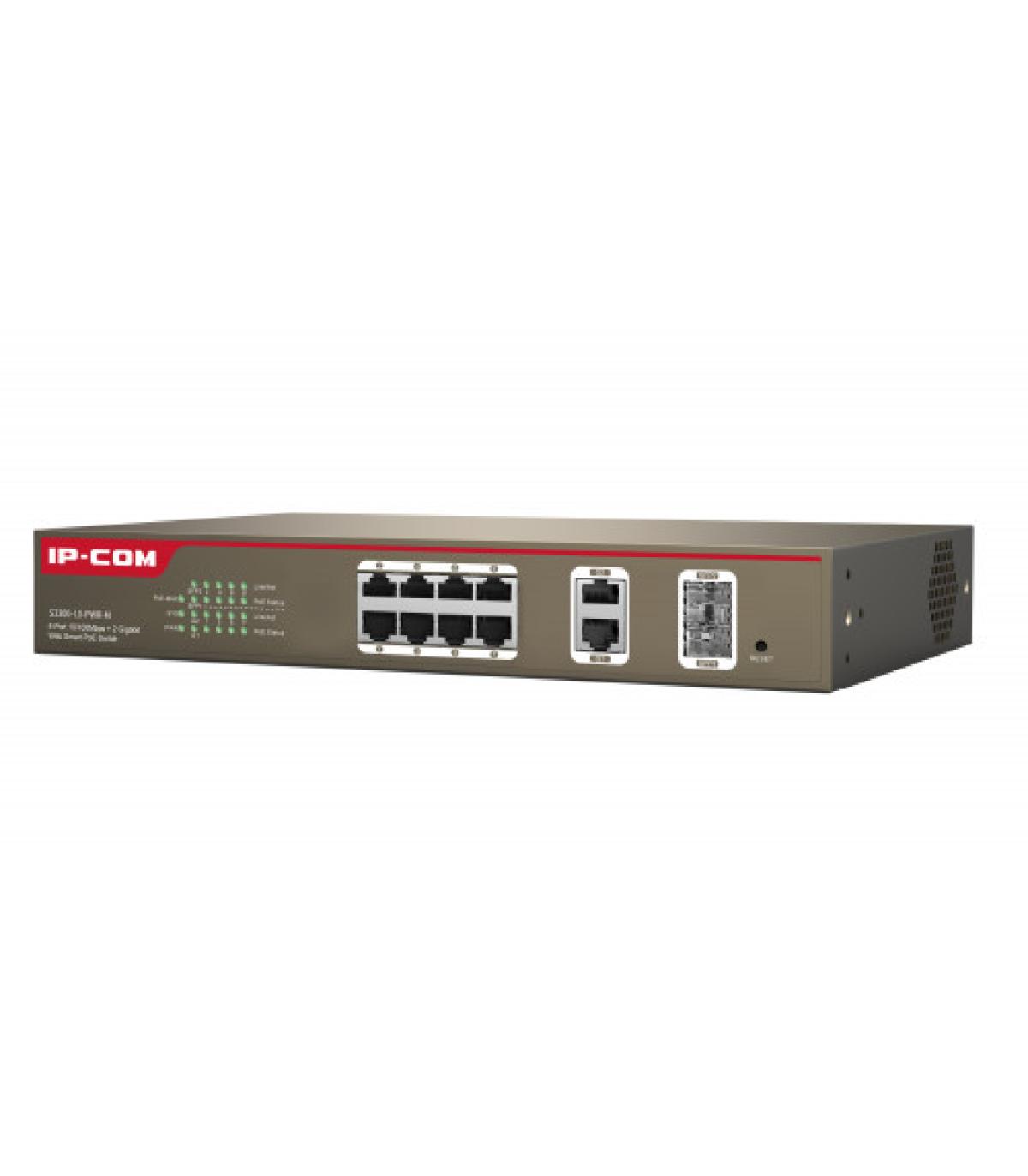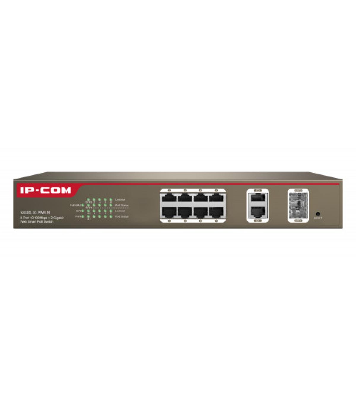 IP-COM Networks S3300-10-PWR-M. Tipo de interruptor: Gestionado, Capa del interruptor: L2. Puertos tipo básico de conmutación RJ-45 Ethernet: Fast Ethernet (10/100), Cantidad de puertos básicos de conmutación RJ-45 Ethernet: 12, Número de módulos SFP instalados: 2. Tabla de direcciones MAC: 4000 entradas, Capacidad de conmutación: 5,6 Gbit/s. Estándares de red: IEEE 802.1D,IEEE 802.1Q,IEEE 802.1w,IEEE 802.3,IEEE 802.3ab,IEEE 802.3af,IEEE 802.3at,IEEE.... Energía sobre Ethernet (PoE)