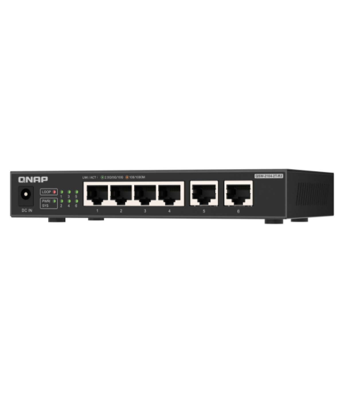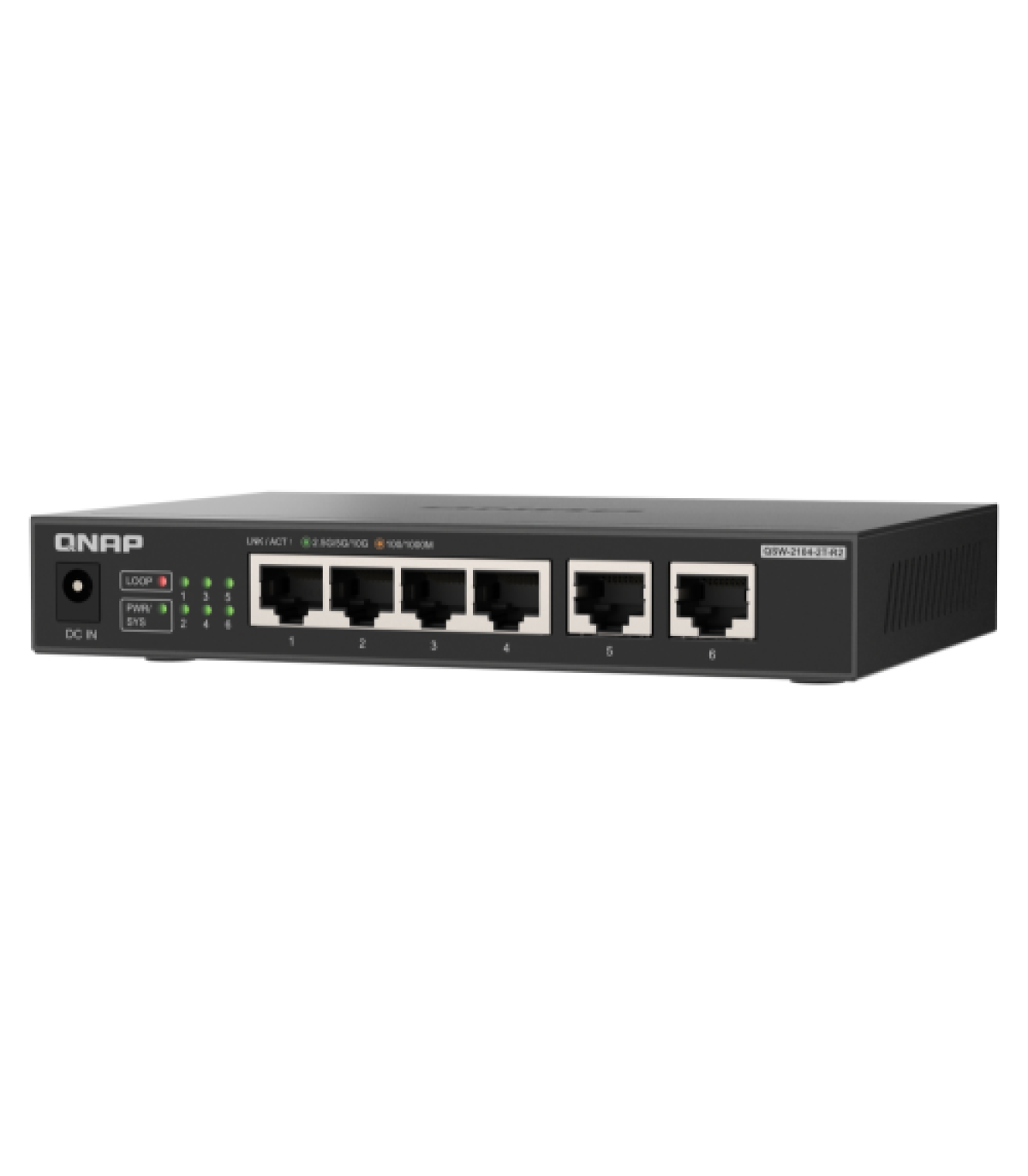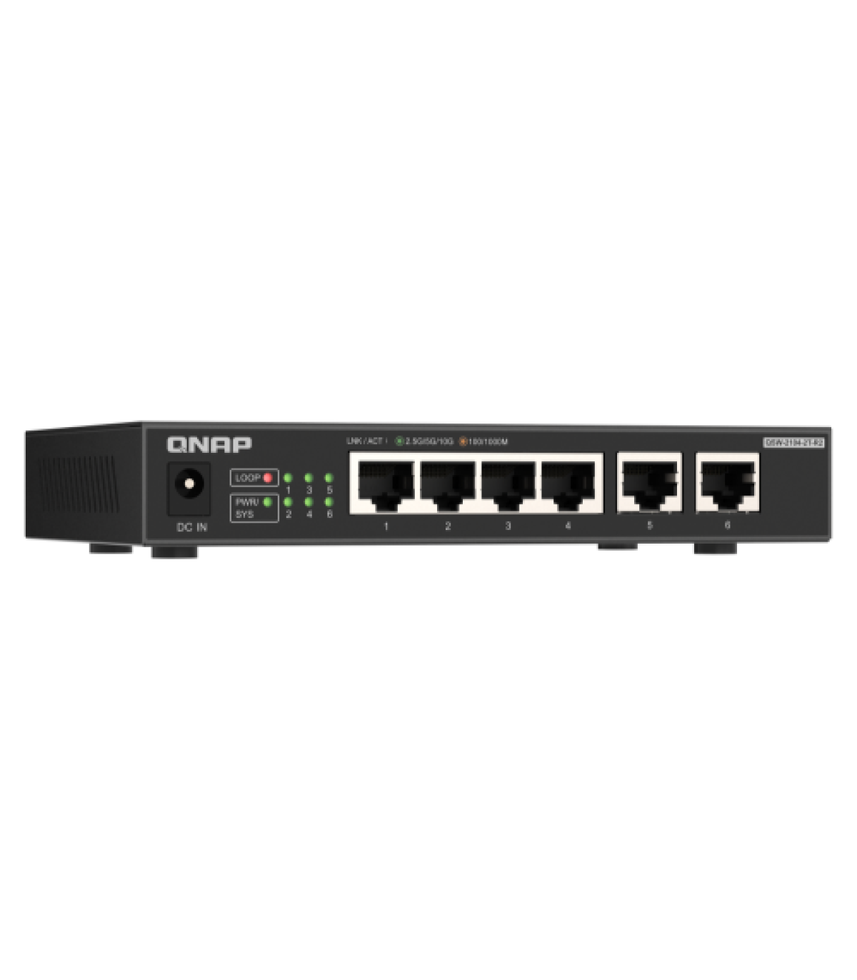 ¡Actualice hoy mismo con nuestro switch de alta velocidad con 6 puertos! El switch no gestionable QSW-2104-2T-R2 de QNAP con cuatro puertos 2,5GbE y dos puertos 10GbE le permite actualizar a una red de alta velocidad estable a un precio asequible. Con una integración perfecta con la tecnología Wi-Fi 6/6E/7 para un rendimiento óptimo de la red inalámbrica, el QSW-2104-2T-R2 es perfecto para oficinas y equipos multimedia, ya que ofrece una transferencia de datos de alta velocidad, permite compartir archivos de gran tamaño y aumenta la eficacia de los flujos de trabajo colaborativos. El QSW-2104-2T-R2 está fabricado en Taiwán (MIT) y ofrece una solución de red fiable y de alta calidad.