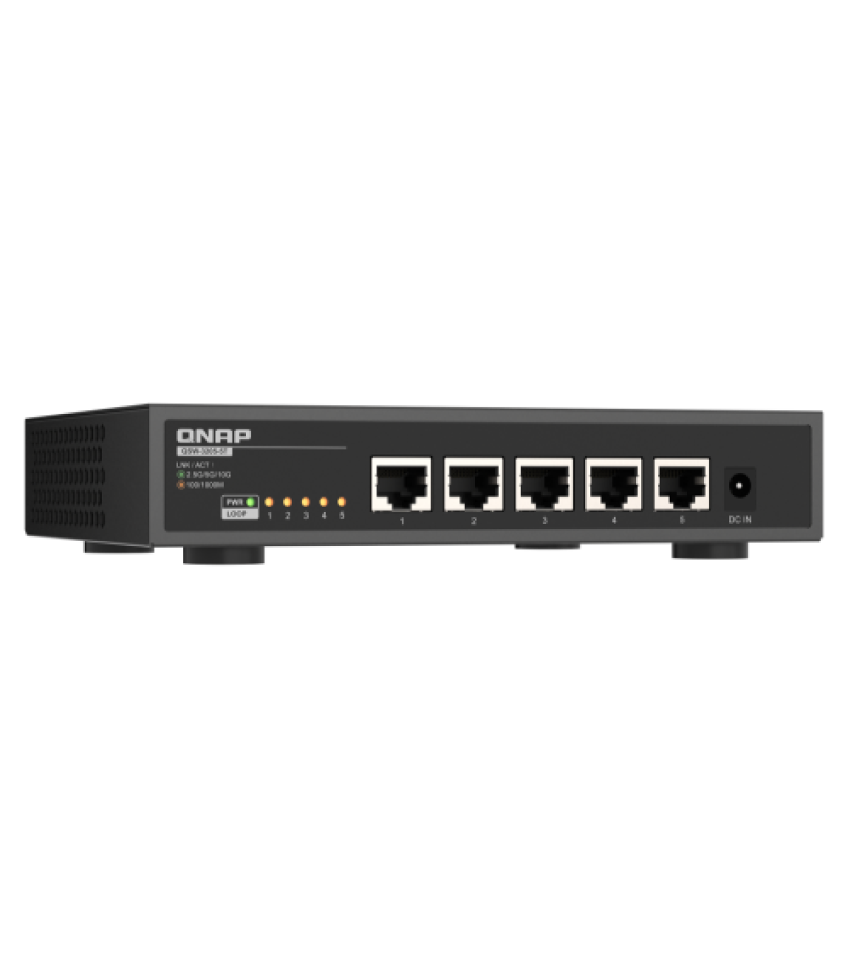 ¡Actualice a 10GbE ahora con nuestro asequible switch 10GbE Plug and Play! El QSW-3205-5T de QNAP es un switch no gestionable 10GBASE-T de 5 puertos que le permite actualizar a velocidades de 10GbE de manera cómoda y fácil. Esta solución asequible garantiza unas conexiones 10GbE estables y de alta velocidad, y se integra sin problemas con la tecnología Wi-Fi 7 para garantizar un rendimiento óptimo de la red. Es perfecto para equipos multimedia y oficinas, ya que proporciona una transferencia de datos de alta velocidad, el uso compartido de archivos de gran tamaño y unos eficientes flujos de trabajo colaborativos. El QSW-3205-5T está fabricado en Taiwán (MIT) y ofrece una solución de red fiable y de alta calidad.