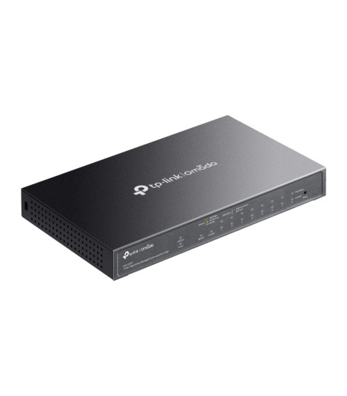 TP-Link Omada ES210GMP. Tipo de interruptor: Gestionado. Puertos tipo básico de conmutación RJ-45 Ethernet: Gigabit Ethernet (10/100/1000), Cantidad de puertos básicos de conmutación RJ-45 Ethernet: 10. Tabla de direcciones MAC: 8000 entradas, Capacidad de conmutación: 20 Gbit/s. Estándares de red: IEEE 802.1Q, IEEE 802.1ab, IEEE 802.1p, IEEE 802.3af, IEEE 802.3at, IEEE 802.3x. Voltaje de entrada DC: 53.5 V. Energía sobre Ethernet (PoE). Montaje de pared