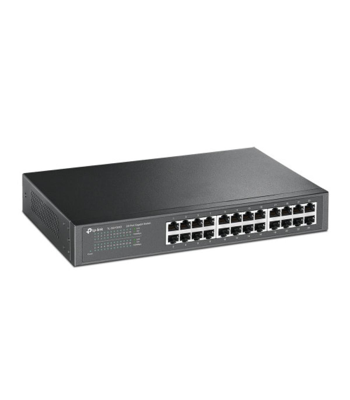 TP-LINK TL-SG1024D. Tipo de interruptor: No administrado. Puertos tipo básico de conmutación RJ-45 Ethernet: Gigabit Ethernet (10/100/1000), Cantidad de puertos básicos de conmutación RJ-45 Ethernet: 24. Bidireccional completo (Full duplex). Tabla de direcciones MAC: 8000 entradas, Capacidad de conmutación: 48 Gbit/s. Estándares de red: IEEE 802.3ab,IEEE 802.3u,IEEE 802.3x. Conector eléctrico: Toma de entrada de CC. Montaje en rack