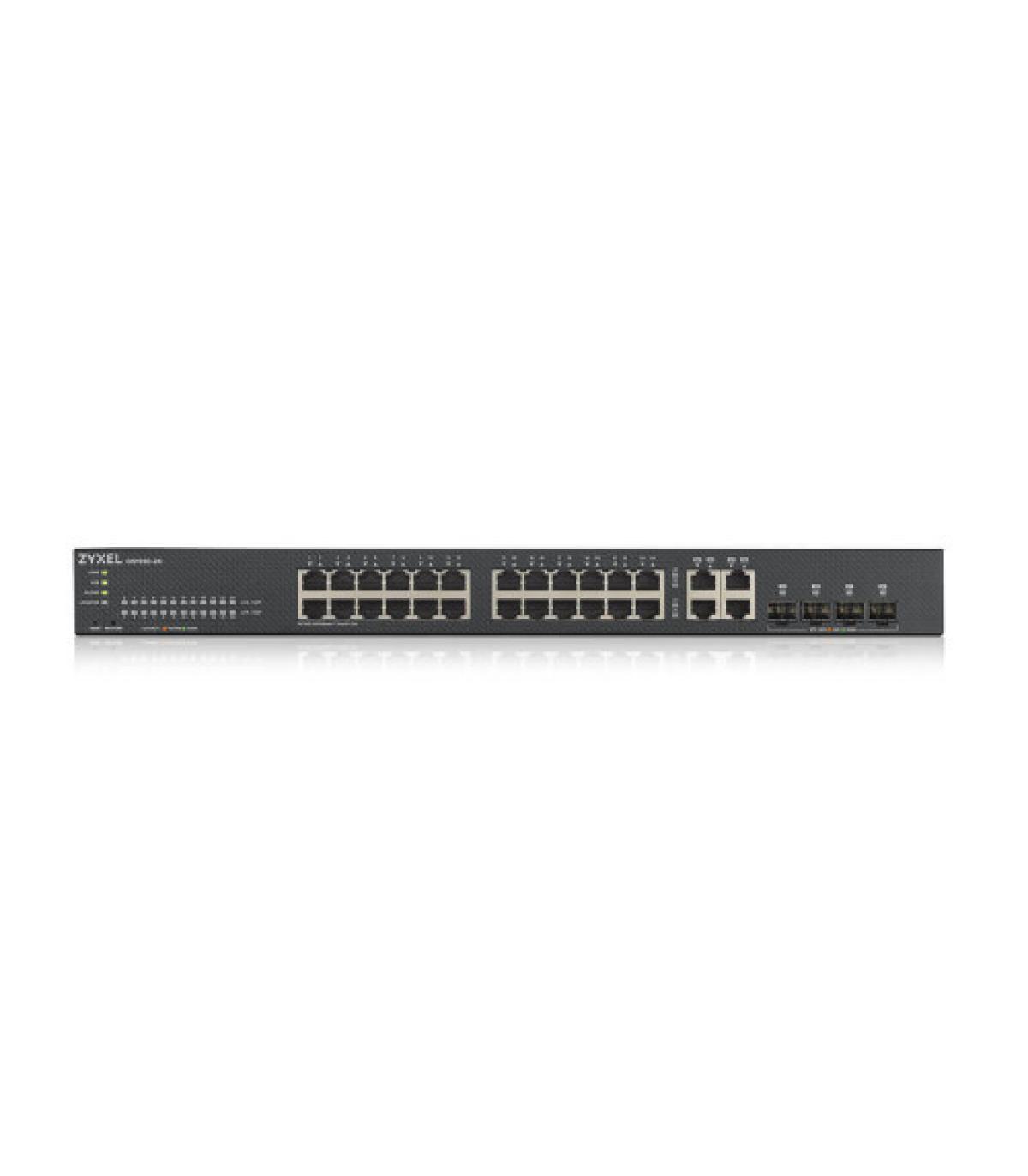 Zyxel GS1920-24V2. Tipo de interruptor: Gestionado. Puertos tipo básico de conmutación RJ-45 Ethernet: Gigabit Ethernet (10/100/1000), Cantidad de puertos básicos de conmutación RJ-45 Ethernet: 24. Tabla de direcciones MAC: 16000 entradas, Capacidad de conmutación: 56 Gbit/s. Estándares de red: IEEE 802.1D,IEEE 802.1Q,IEEE 802.1ab,IEEE 802.1p,IEEE 802.1s,IEEE 802.1w,IEEE 802.1x,IEEE.... Montaje en rack