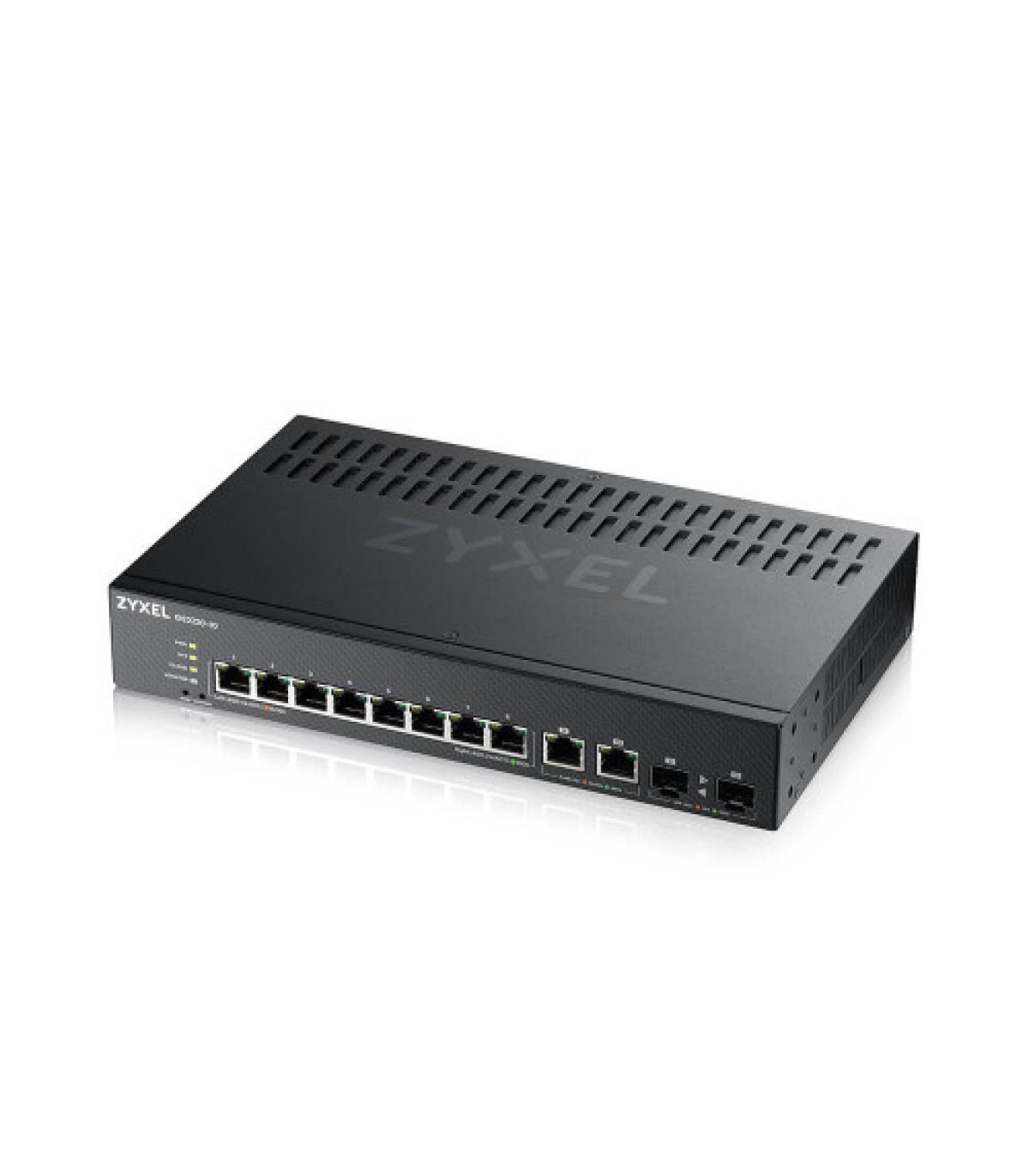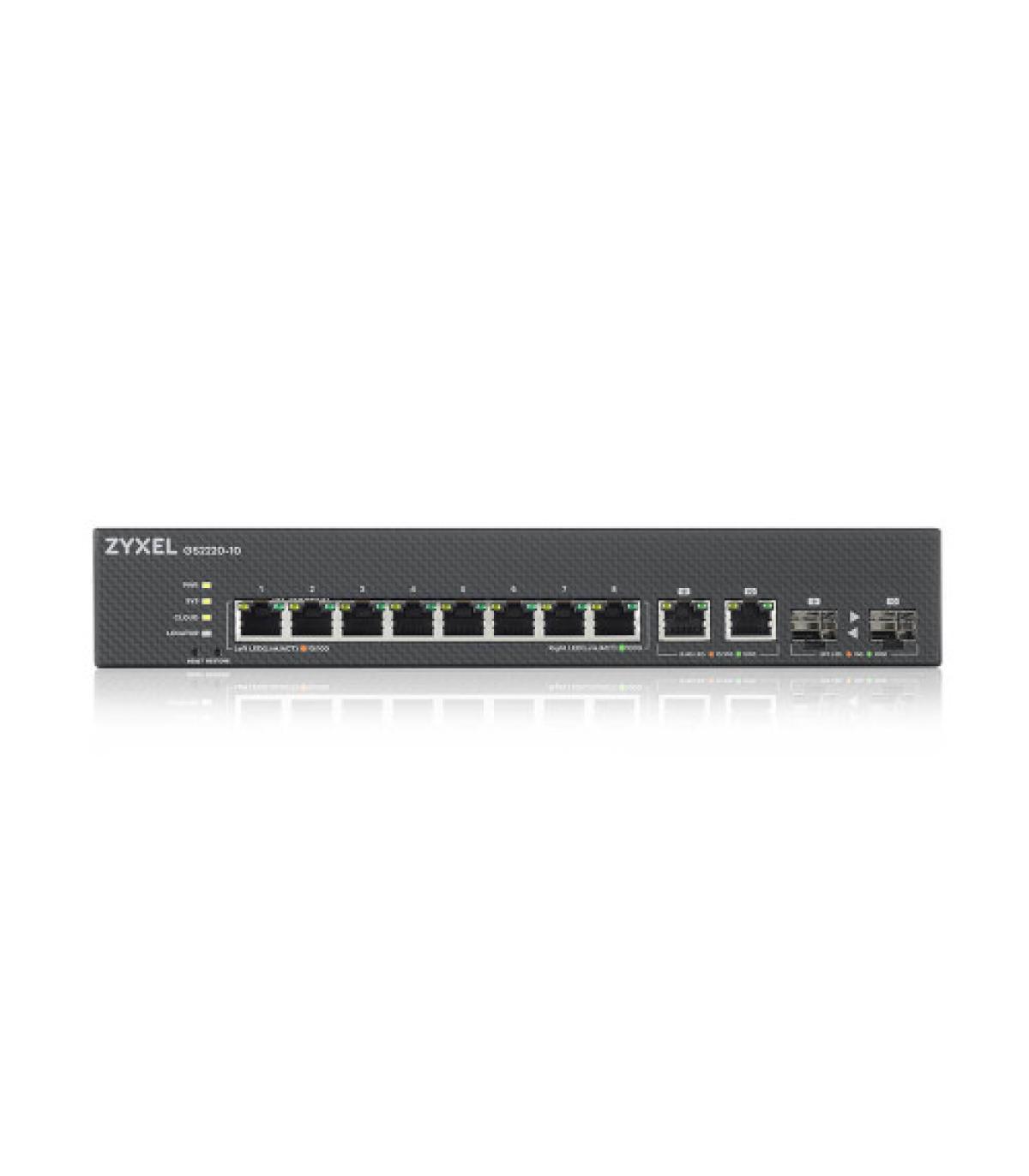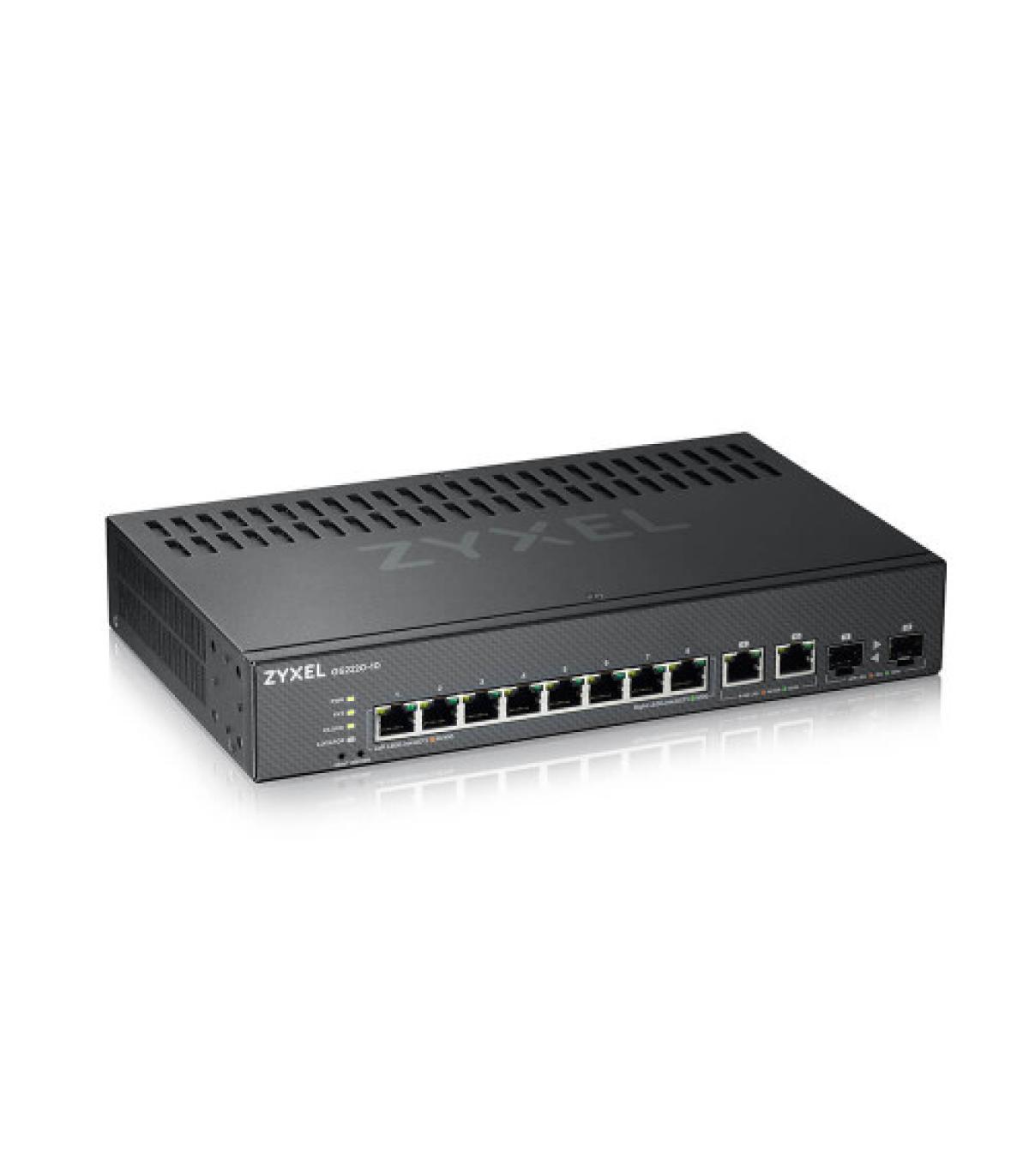 Zyxel GS2220-10-EU0101F. Tipo de interruptor: Gestionado, Capa del interruptor: L2. Puertos tipo básico de conmutación RJ-45 Ethernet: Gigabit Ethernet (10/100/1000), Cantidad de puertos básicos de conmutación RJ-45 Ethernet: 10. Tabla de direcciones MAC: 16000 entradas, Capacidad de conmutación: 20 Gbit/s. Estándares de red: IEEE 802.1D,IEEE 802.1Q,IEEE 802.1ab,IEEE 802.1p,IEEE 802.1s,IEEE 802.1w,IEEE 802.1x,IEEE.... Montaje en rack