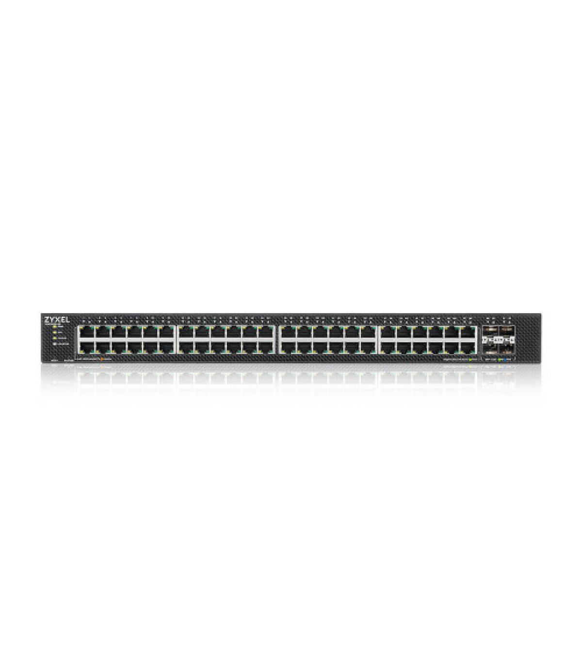 Zyxel XGS1935-52. Tipo de interruptor: Gestionado, Capa del interruptor: L2+/L3. Puertos tipo básico de conmutación RJ-45 Ethernet: Gigabit Ethernet (10/100/1000), Cantidad de puertos básicos de conmutación RJ-45 Ethernet: 48. Tabla de direcciones MAC: 16000 entradas, Capacidad de conmutación: 176 Gbit/s. Estándares de red: IEEE 802.1D, IEEE 802.1p, IEEE 802.1s, IEEE 802.1w, IEEE 802.1x, IEEE 802.3, IEEE 802.3ab, IEEE.... Montaje en rack