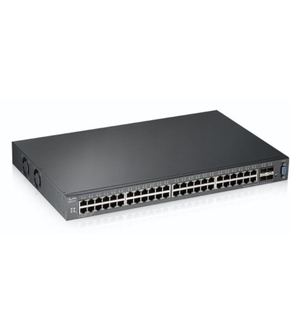 Zyxel XGS2210-52. Tipo de interruptor: Gestionado, Capa del interruptor: L2. Puertos tipo básico de conmutación RJ-45 Ethernet: Gigabit Ethernet (10/100/1000), Cantidad de puertos básicos de conmutación RJ-45 Ethernet: 48. Tabla de direcciones MAC: 16000 entradas, Capacidad de conmutación: 176 Gbit/s. Estándares de red: IEEE 802.1D,IEEE 802.1Q,IEEE 802.1ab,IEEE 802.1p,IEEE 802.1s,IEEE 802.1w,IEEE 802.1x,IEEE.... Montaje en rack, Factor de forma: 1U