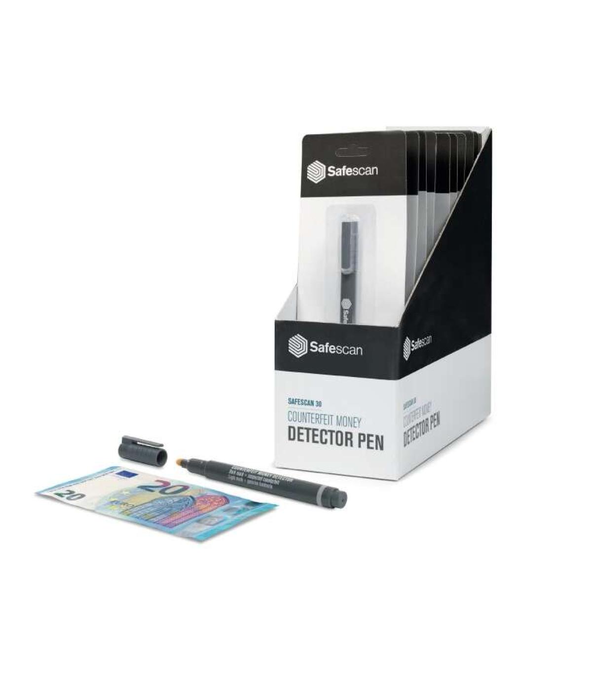 La tinta con base de yodo del Safescan 30 reacciona con un almidón que se encuentra en todos los papeles estándares, excepto en el papel moneda oficial con base de algodón utilizado por los bancos centrales en el mundo. Además ayuda a sacar de circulación el dinero falso: la tinta pálida desaparecerá en billetes genuinos, pero dejará una marca púrpura permanente en las falsificaciones sospechosas.