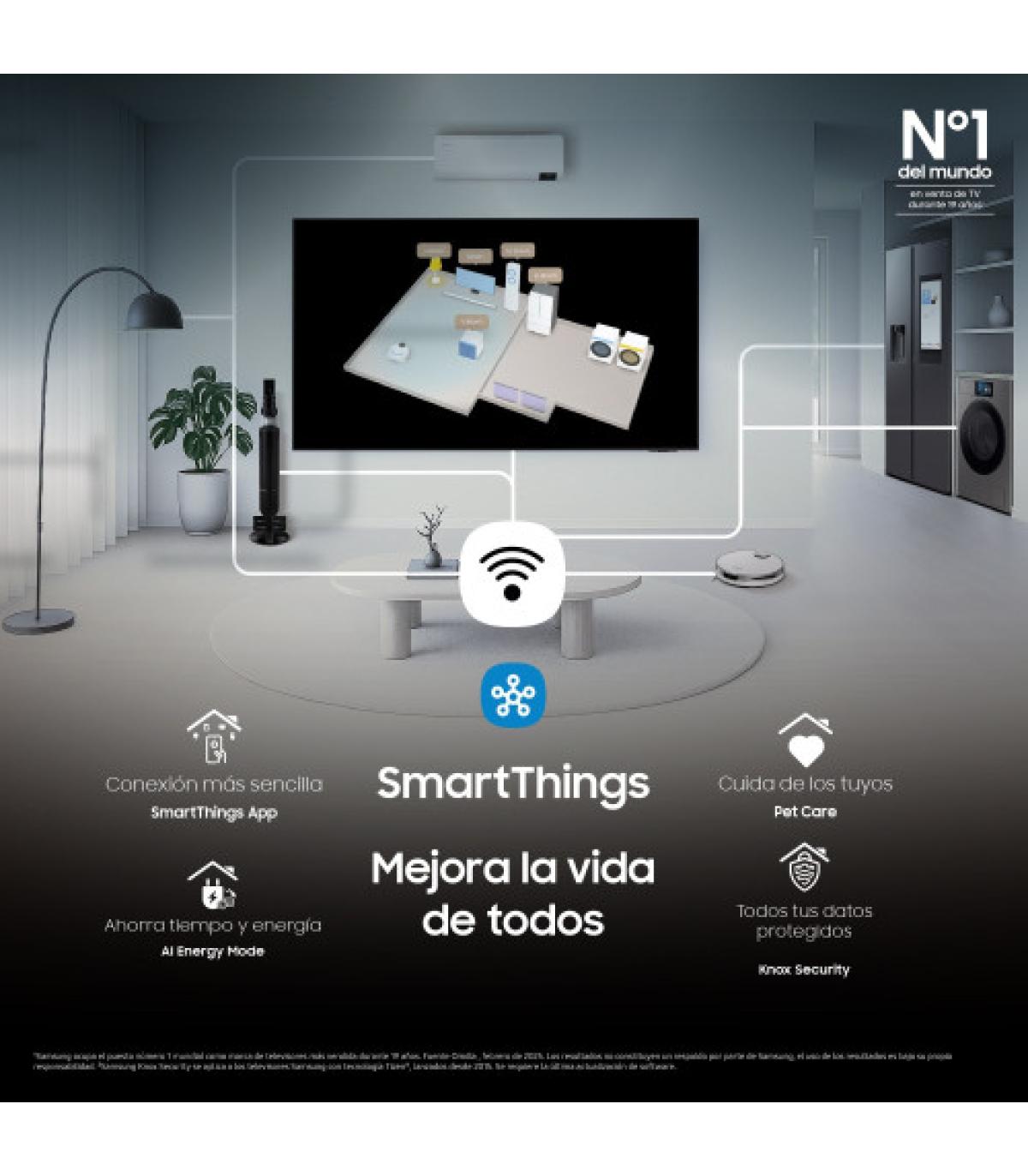 - Tecnologías Samsung (AV/TV): AI Energy Mode, Contrast Enhancer, Crystal Processor 4K, MetalStream Design, Object Tracking Sound Lite, Q-Symphony, Samsung Health, Samsung Knox Security