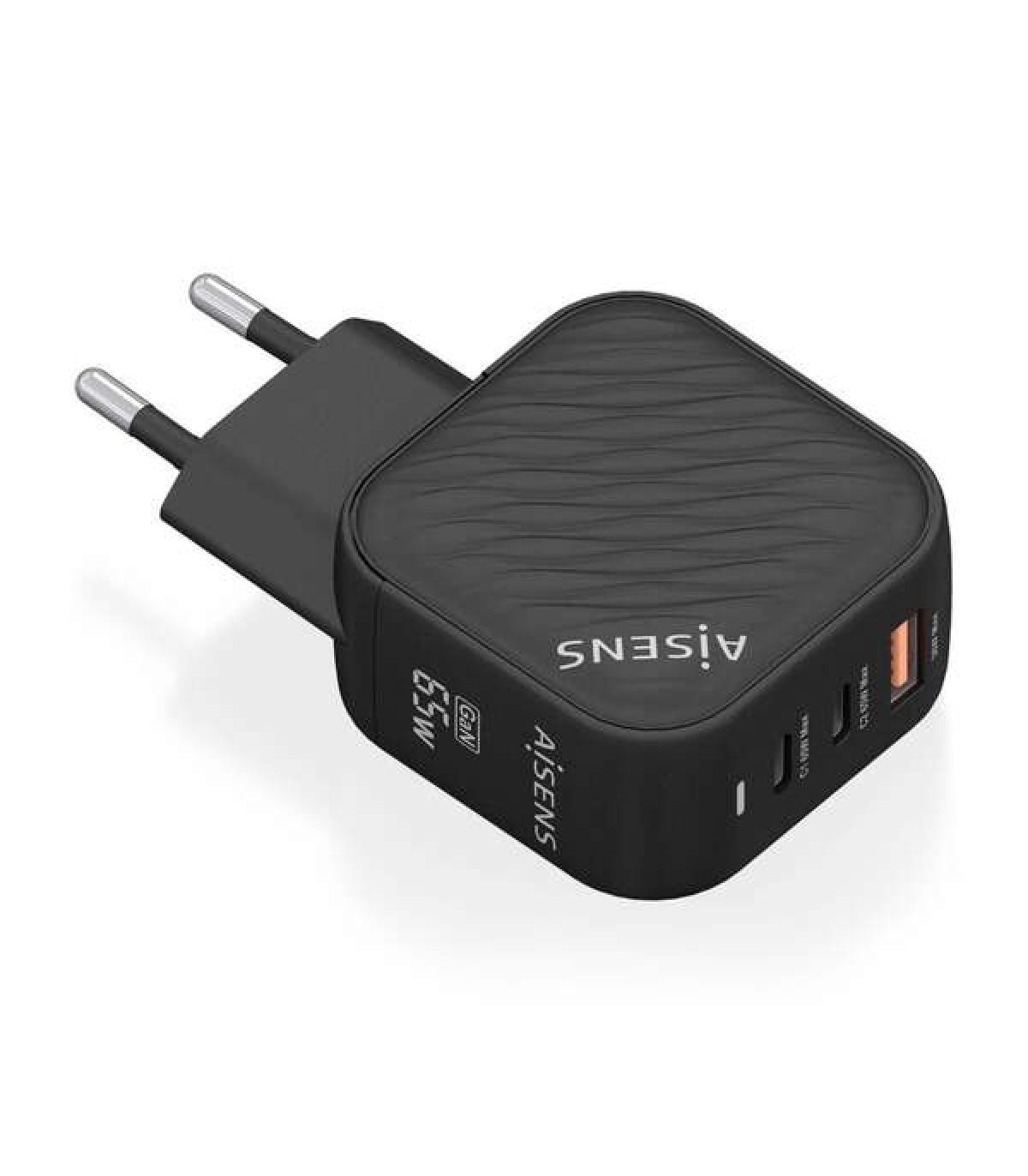 Cargador Gan 65W, 2xUSB-C PD3.0 QC4.0, 1xUSB-A QC3.0, Negro