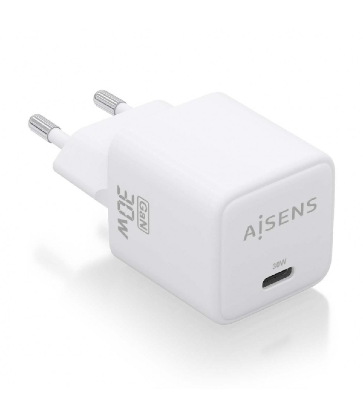 Aisens Cargador GaN USB-C 30W: Eficiencia Energética y Seguridad - Tecnología AI - Múltiples Protocolos de Carga - Protección Contra Sobrecarga y Cortocircuito - Compatible con Dispositivos USB-C