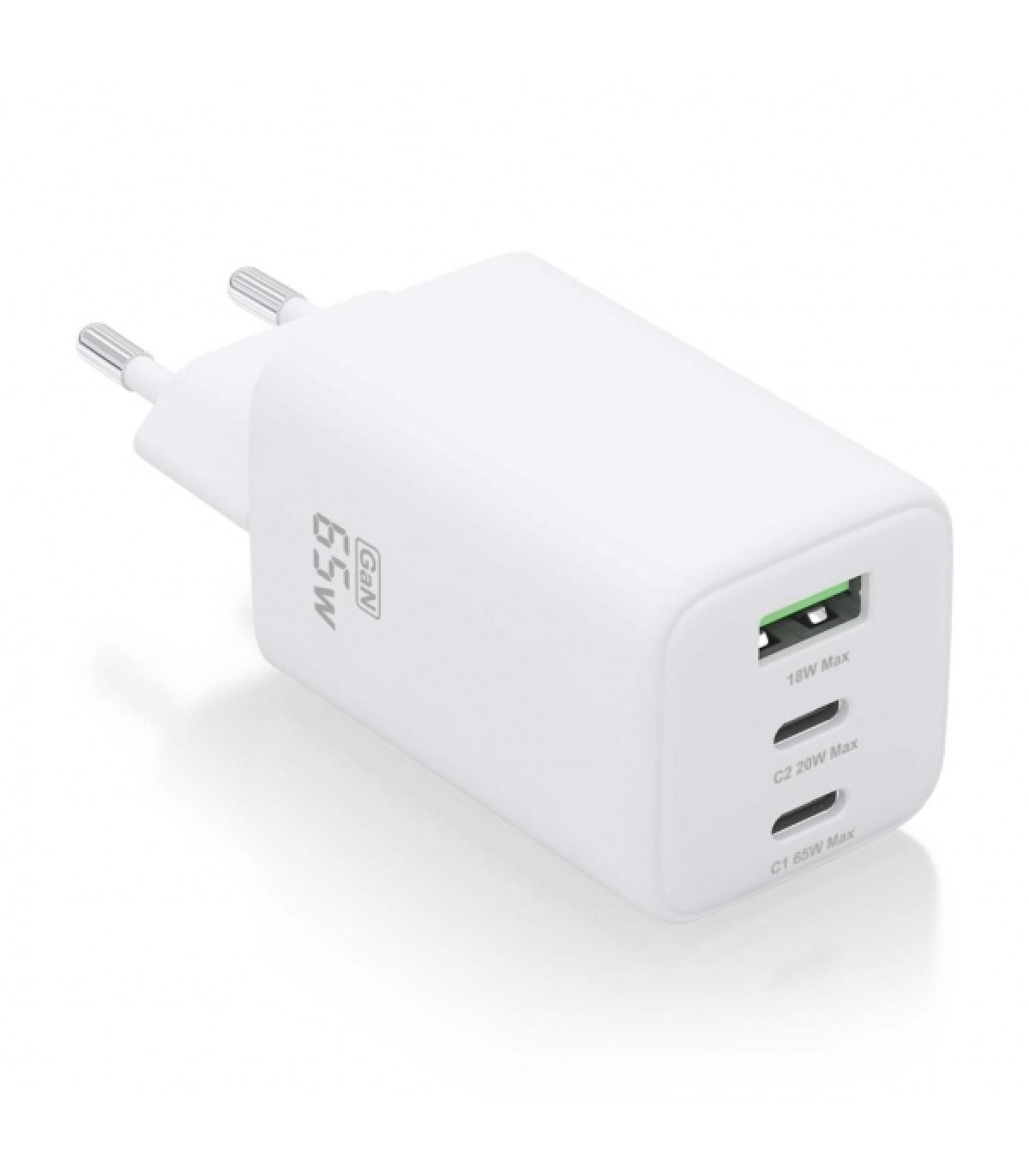 -Cargador GaN USB-C 65W para cargar portátiles, móviles, cámaras y tablets etc. Diseño muy elegante, moderno y práctico.