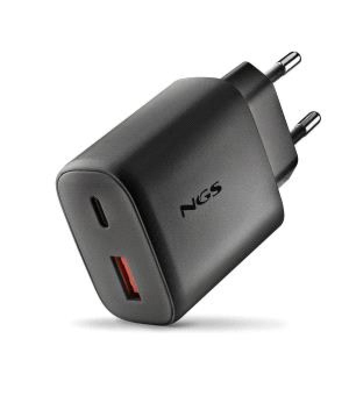 Rápido cargador GaN de pared que incorpora una salida USB-C (PD & PPS) y una salida USB-A Quick Charge 3.0, ofreciendo hasta 45W de potencia total.
