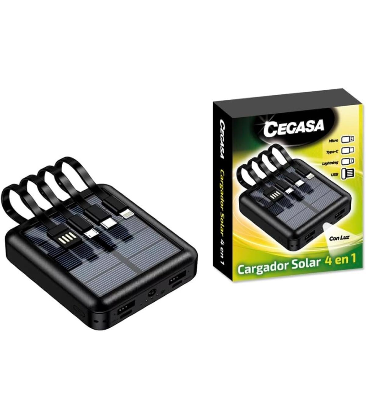 -Conectores de salida: Cable Tipo USB-C, Lighting, USB-A, Micro USB.