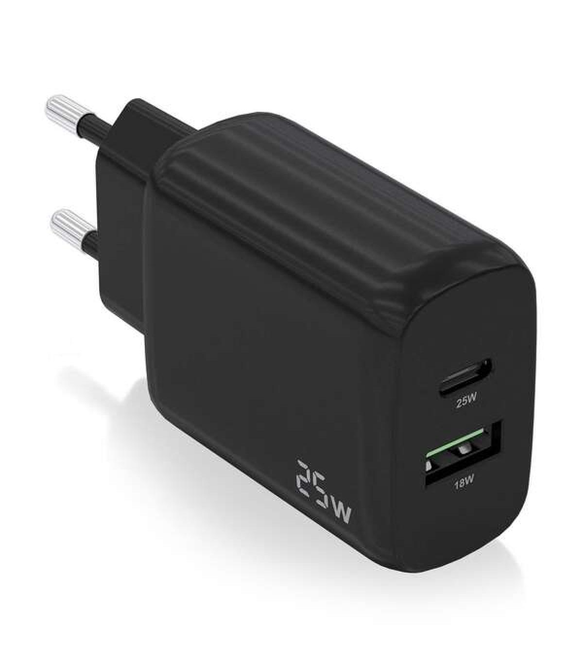 Aisens Cargador 25W - 1xUSB-C PD3.0 - 1xUSB-A QC3.0 - Color Negro