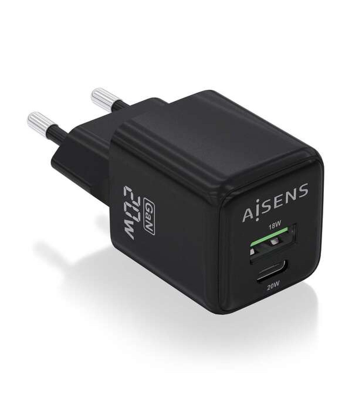 Aisens Cargador Gan 20W - 1xUSB-C PD3.0 QC4.0 - 1xUSB-A QC3.0 - Color Negro