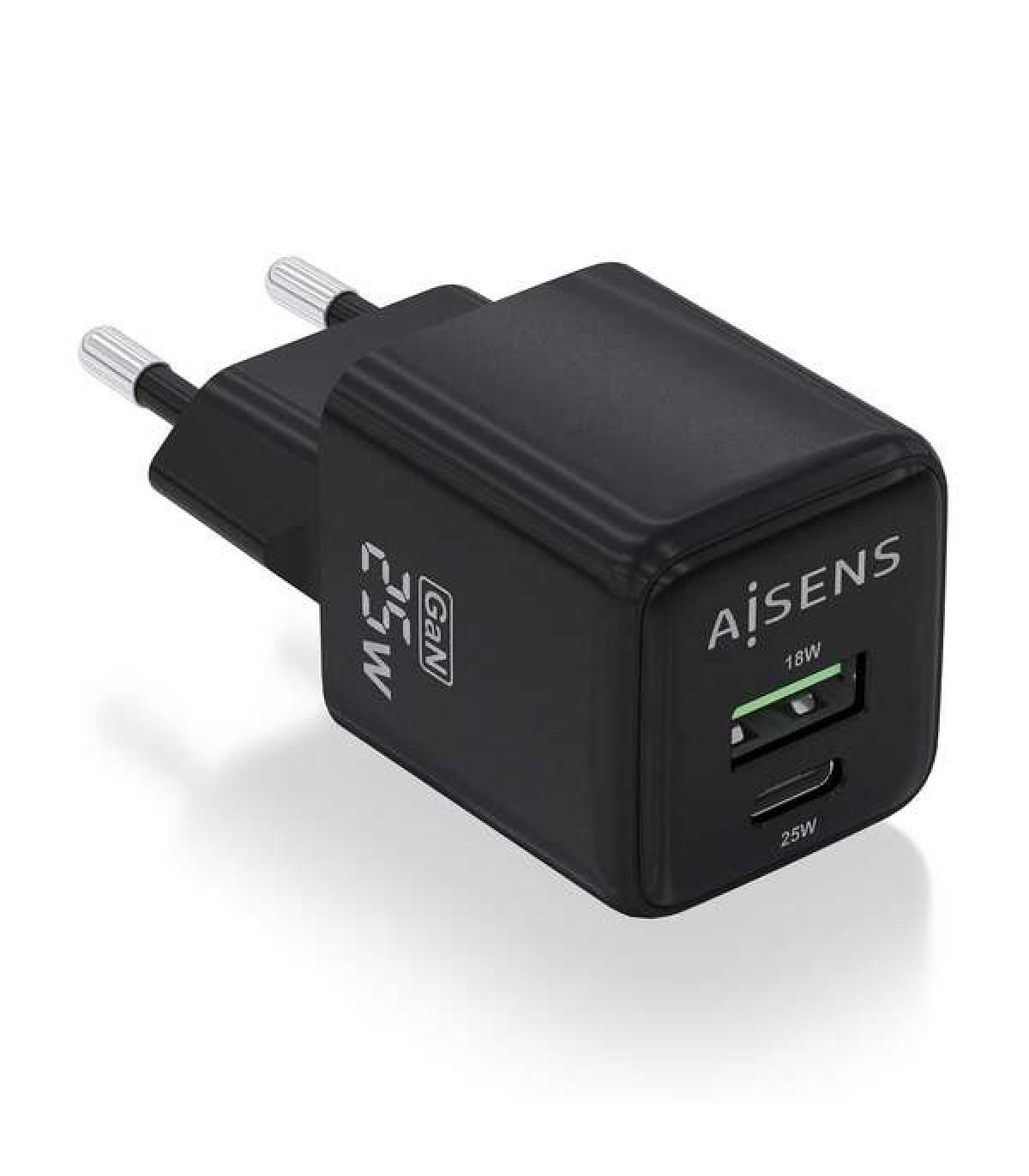 Aisens Cargador Gan 25W - 1xUSB-C PD3.0 QC4.0 - 1xUSB-A QC3.0 - Color Negro