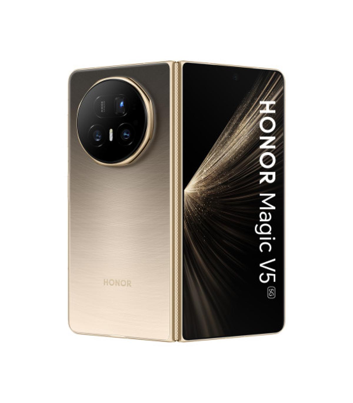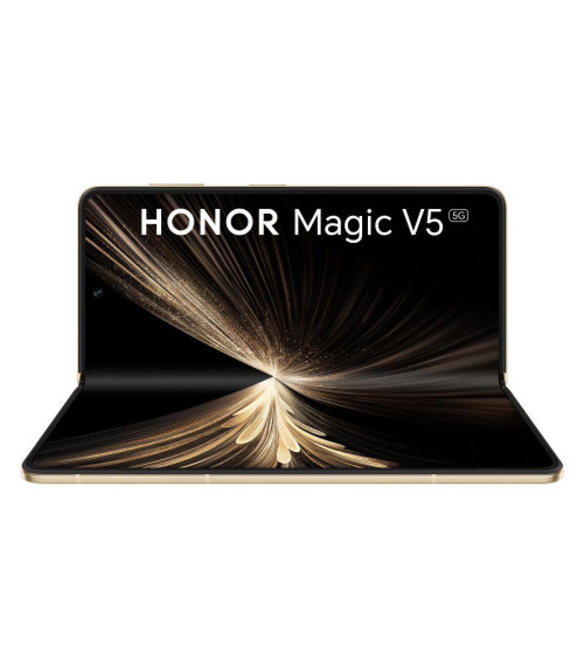 Honor MAGIC V5. Diagonal de la pantalla: 20,2 cm (7.95"), Resolución de la pantalla: 2352 x 2172 Pixeles. Familia de procesador: Qualcomm Snapdragon, Modelo del procesador: 8 Elite. Capacidad de RAM: 16 GB, Capacidad de almacenamiento interno: 512 GB. Resolución de la cámara trasera (numérica): 50 MP, Tipo de cámara trasera: Triple cámara. Sistema operativo instalado: MagicOS 9.0.1. Capacidad de batería: 5820 mAh. Color del producto: Oro. Peso: 222 g