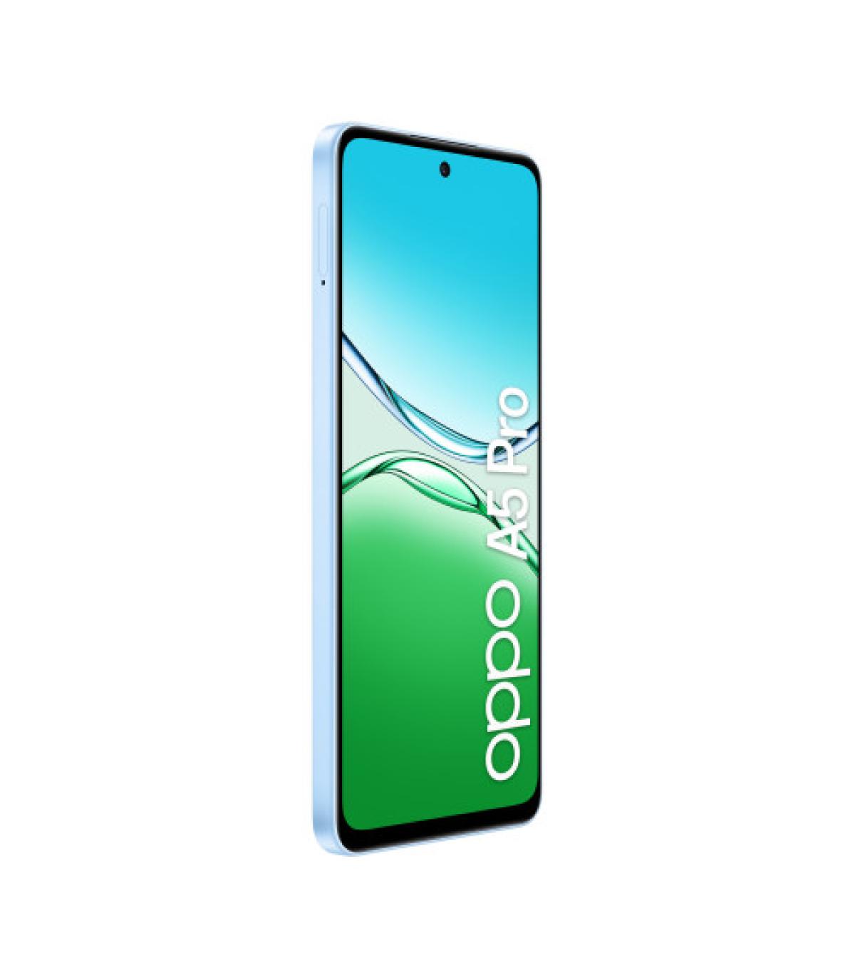 OPPO A5 Pro. Diagonal de la pantalla: 16,9 cm (6.67"), Resolución de la pantalla: 1604 x 720 Pixeles. Frecuencia del procesador: 2,1 GHz, Familia de procesador: Qualcomm Snapdragon, Modelo del procesador: 6s Gen 1. Capacidad de RAM: 8 GB, Tipo de RAM: LPDDR4X, Capacidad de almacenamiento interno: 256 GB. Resolución de la cámara trasera (numérica): 50 MP, Tipo de cámara trasera: Cámara doble. Capacidad de la tarjeta SIM: SIM doble. Sistema operativo instalado: Android 15. Capacidad de batería: 5800 mAh. Color del producto: Azul. Peso: 194 g