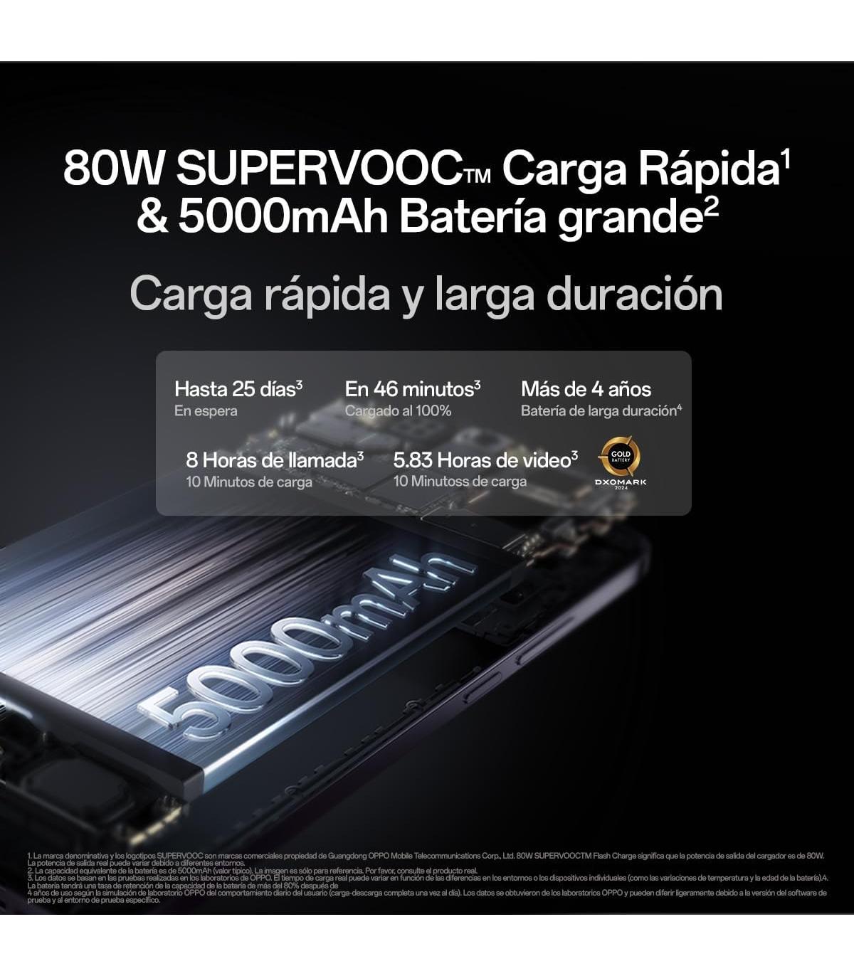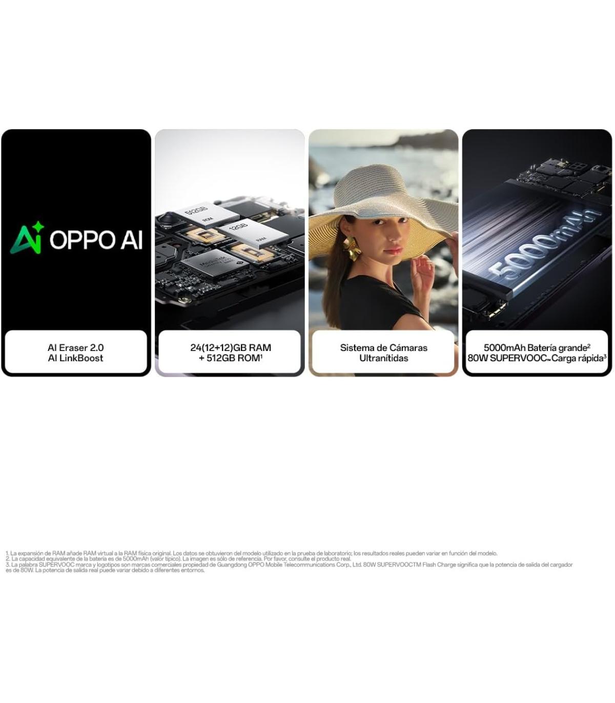 OPPO Reno12 Pro 5G - Smartphone Libre con IA, 24GB (12GB+12GB) +512GB, Pantalla 3D AMOLED 6.7", Cámara 50+8+50 MP, Android, Vídeo 4K, Batería 5000mAh, Carga Rápida 80W - Nebula Black .Carga rápida y larga duración.