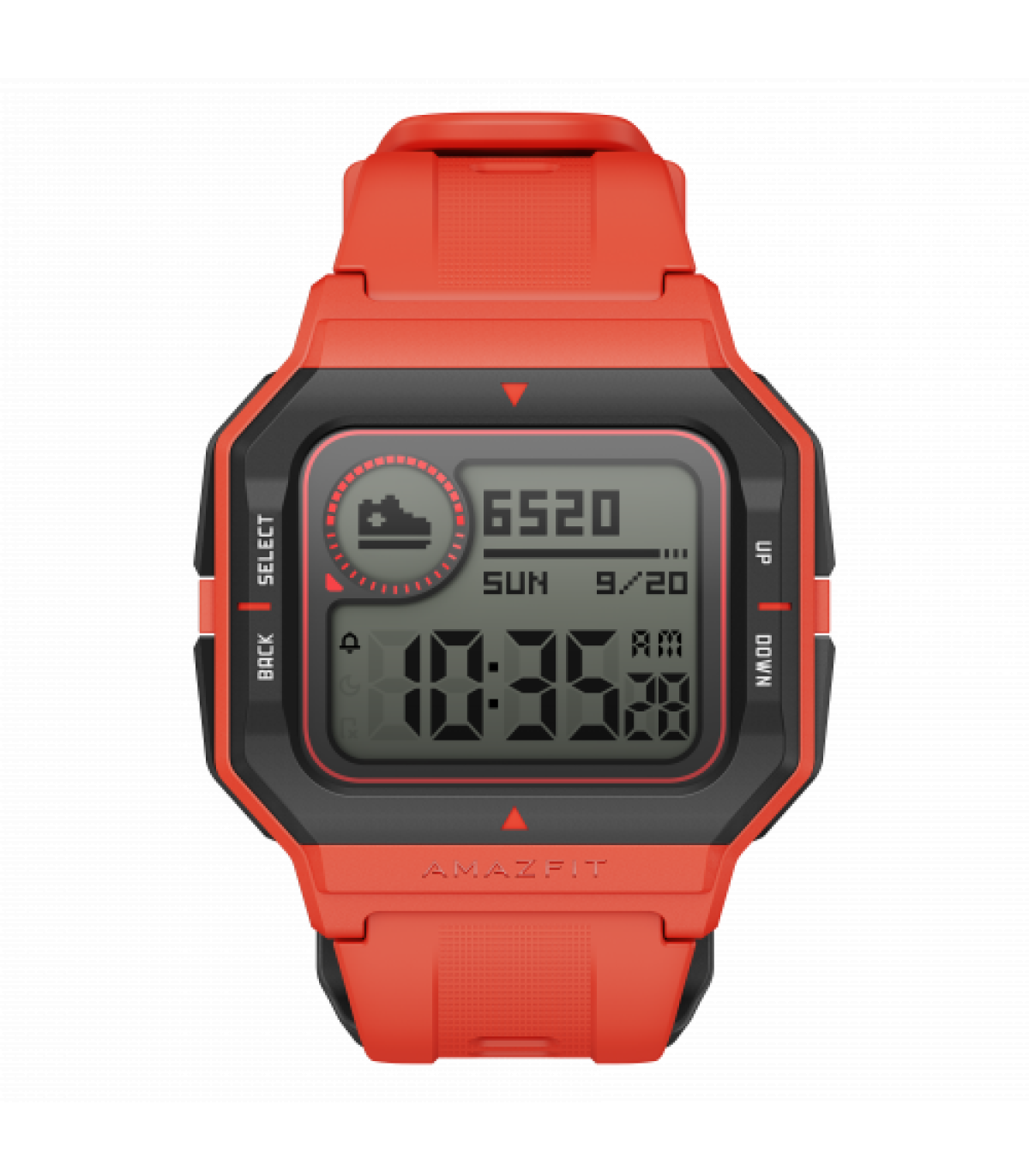 Amazfit Neo. Diagonal de la pantalla: 3,05 cm (1.2"), Tipo de visualizador: STN. Capacidad de batería: 160 mAh. Peso: 32 g. Humedad: resistente al agua hasta: 50 m, Material de la banda: Poliuretano, Color de banda: Naranja
