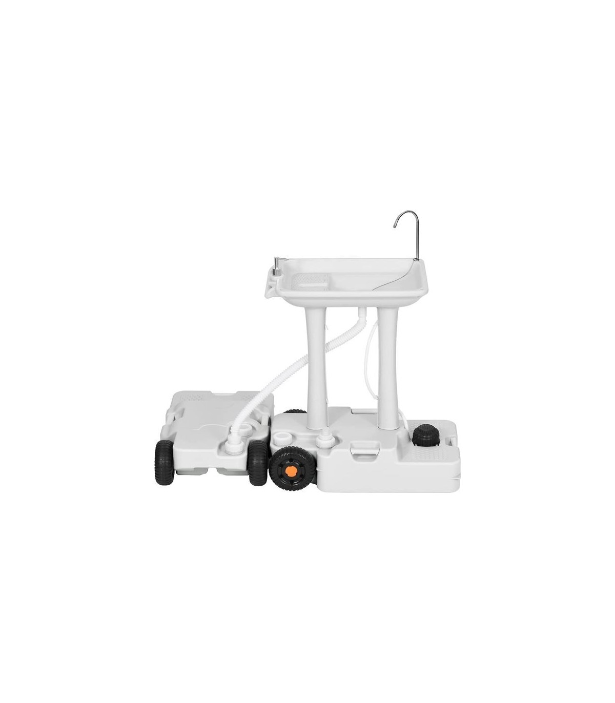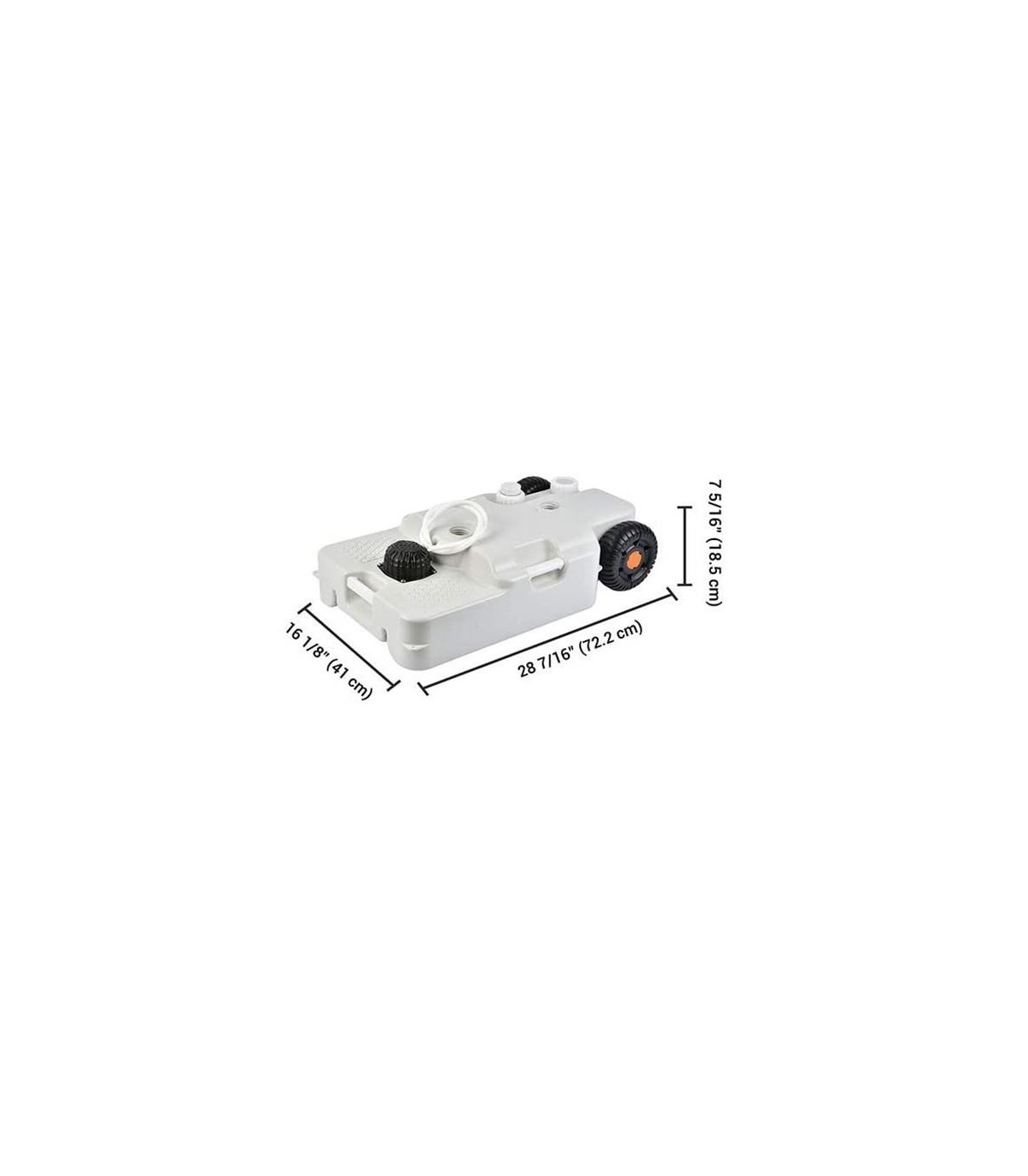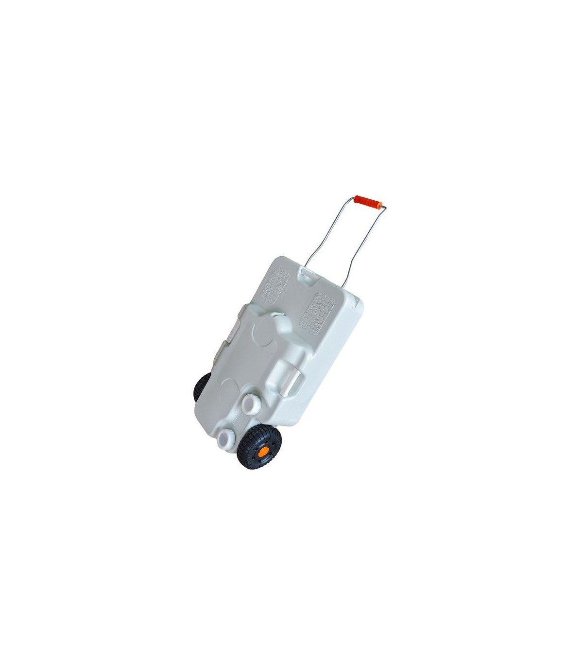 El producto descrito es un depósito de agua de alta calidad, ideal para su uso en acampadas, caravanas y lugares de construcción. Está fabricado con polietileno de alta calidad y cuenta con un asa de transporte abatible y ruedas para facilitar su transporte. Tiene una capacidad de 30 litros y está equipado con dos bocas para vaciado y llenado. Además, es totalmente compatible con inodoros y lavabos MUVIP. Sus dimensiones son 718x419x127mm y su peso es de 4Kg.