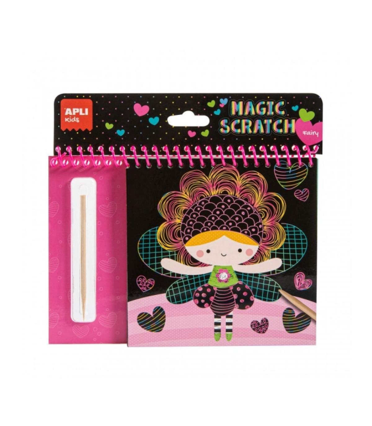 El Bloc de láminas para rascar modelo Hadas es un producto diseñado para proporcionar horas de entretenimiento creativo a los niños. Este bloc incluye 8 láminas con ilustraciones mágicas y un palito rascador de madera, permitiendo a los pequeños artistas descubrir colores ocultos y crear sus propios diseños.