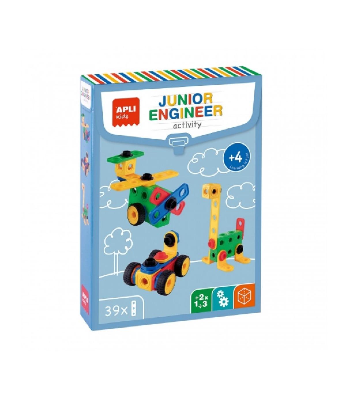 Set educativo con 39 piezas para construir encajándolos entre sí, creando formas 3D. El juego incluye una herramienta para enroscar y desenroscar los tornillos y tuercas y 8 fichas con ejemplos para desarrollar su destreza e imaginación. Producto ideal para que los más pequeños trabajen y desarrollen la psicomotricidad fina mientras crean formas con ellos, así como para promover y mejorar la coordinación mano-ojo, el razonamiento lógico-matemático, la visión espacial y las habilidades de comunicación, realizando clasificaciones o actividades en grupo. Recomendado para niños a partir de 4 años.