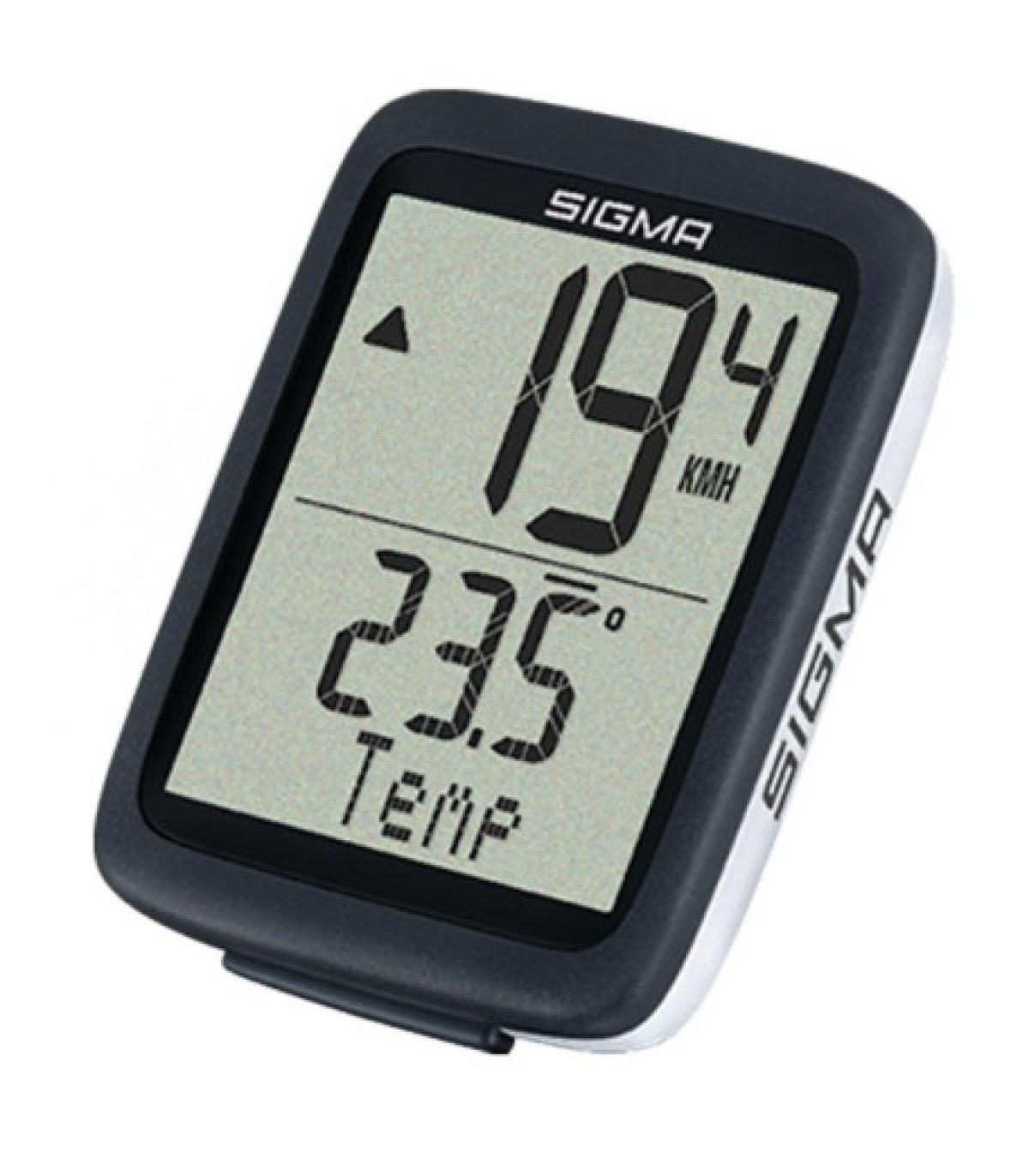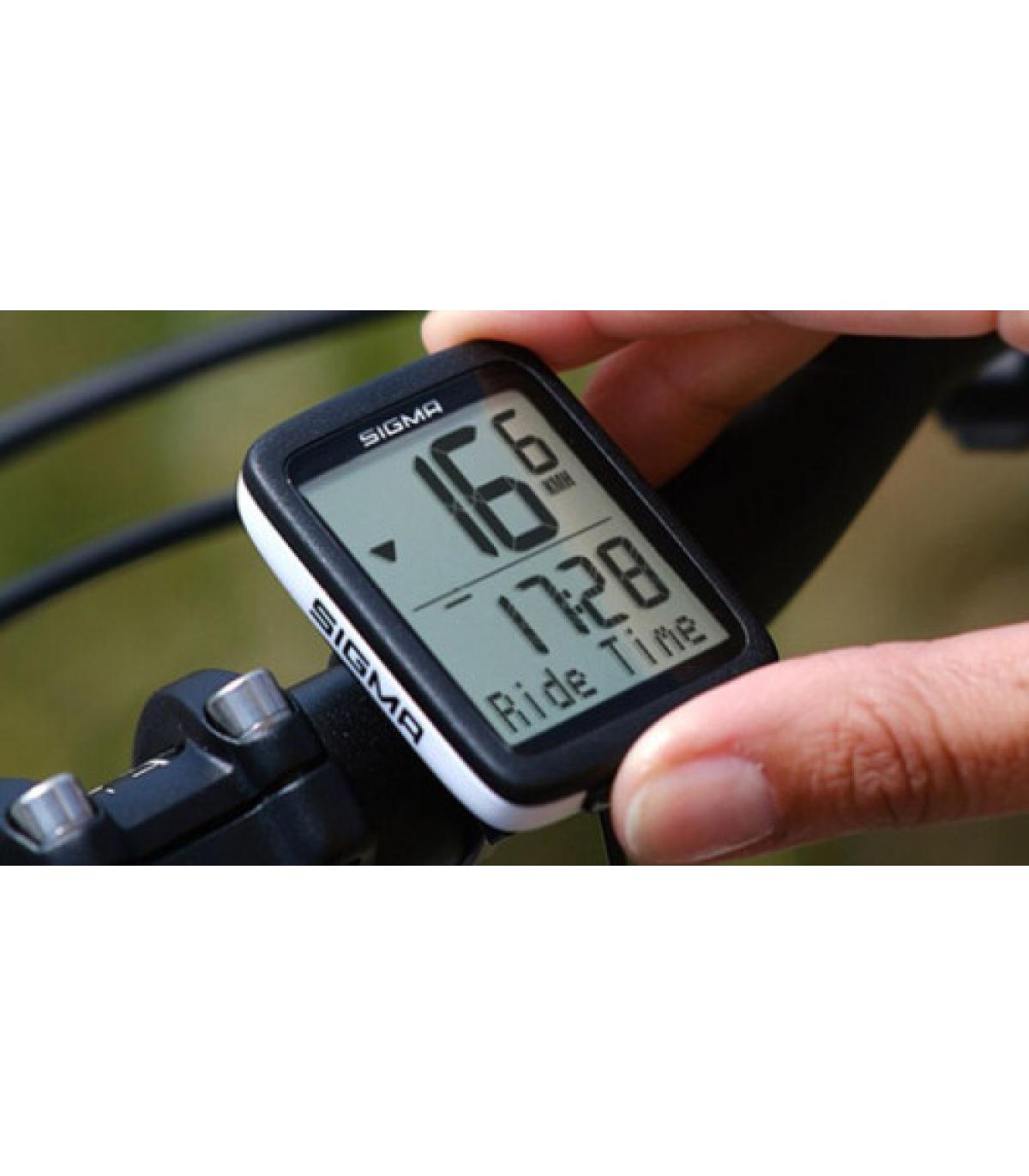 Características - SIGMA BC 10.0 WRInformación clara y fácil de leer gracias a la pantalla de dos partes de 31 x 39 mmManejo muy sencillo y, por tanto, seguro, mediante un gran botónPráctica función de arranque-parada: arranque automático al arrancar y pausa automática al detenerseVisualización de los valores de velocidad, distancia del viaje, distancia total, tiempo, tiempo de conducción del viaje y tiempo de conducción total, velocidad media, comparación de la media con la velocidad actual, velocidad máxima, temperatura.Selección mediante un etiquetado claroCarcasa robusta e impermeableGracias a los tamaños de neumáticos predefinidos, la configuración del ordenador SIGMA para una nueva bicicleta es fácil, desde una pequeña bicicleta para niños hasta una bicicleta de 29". Si se desea, también es posible introducir la circunferencia del neumático medida por uno mismo con precisión milimétrica.Conexión por cable sin interferencias y con ahorro de batería entre el sensor y el ordenadorMontaje sencillo pero seguro con bridas para cables