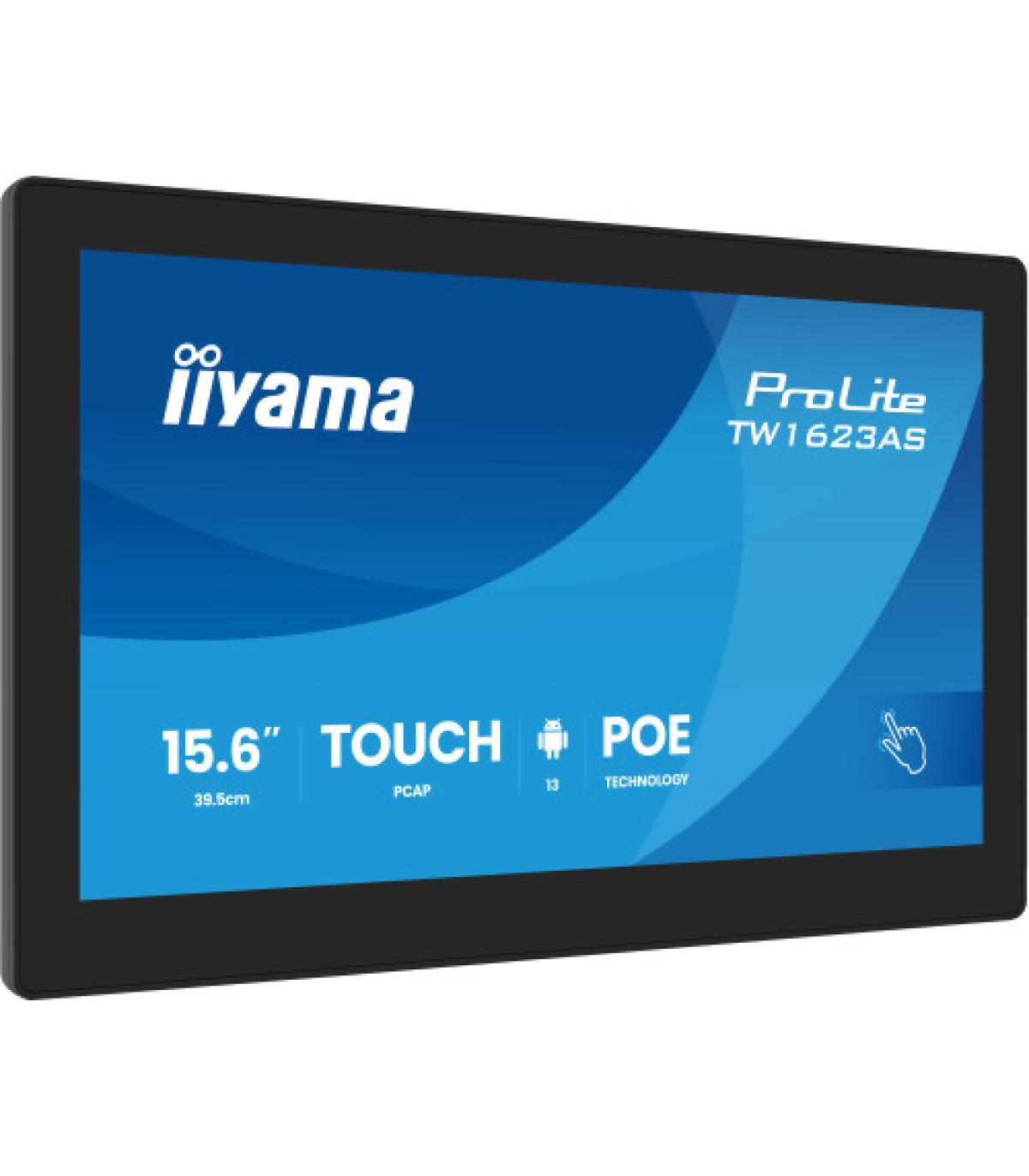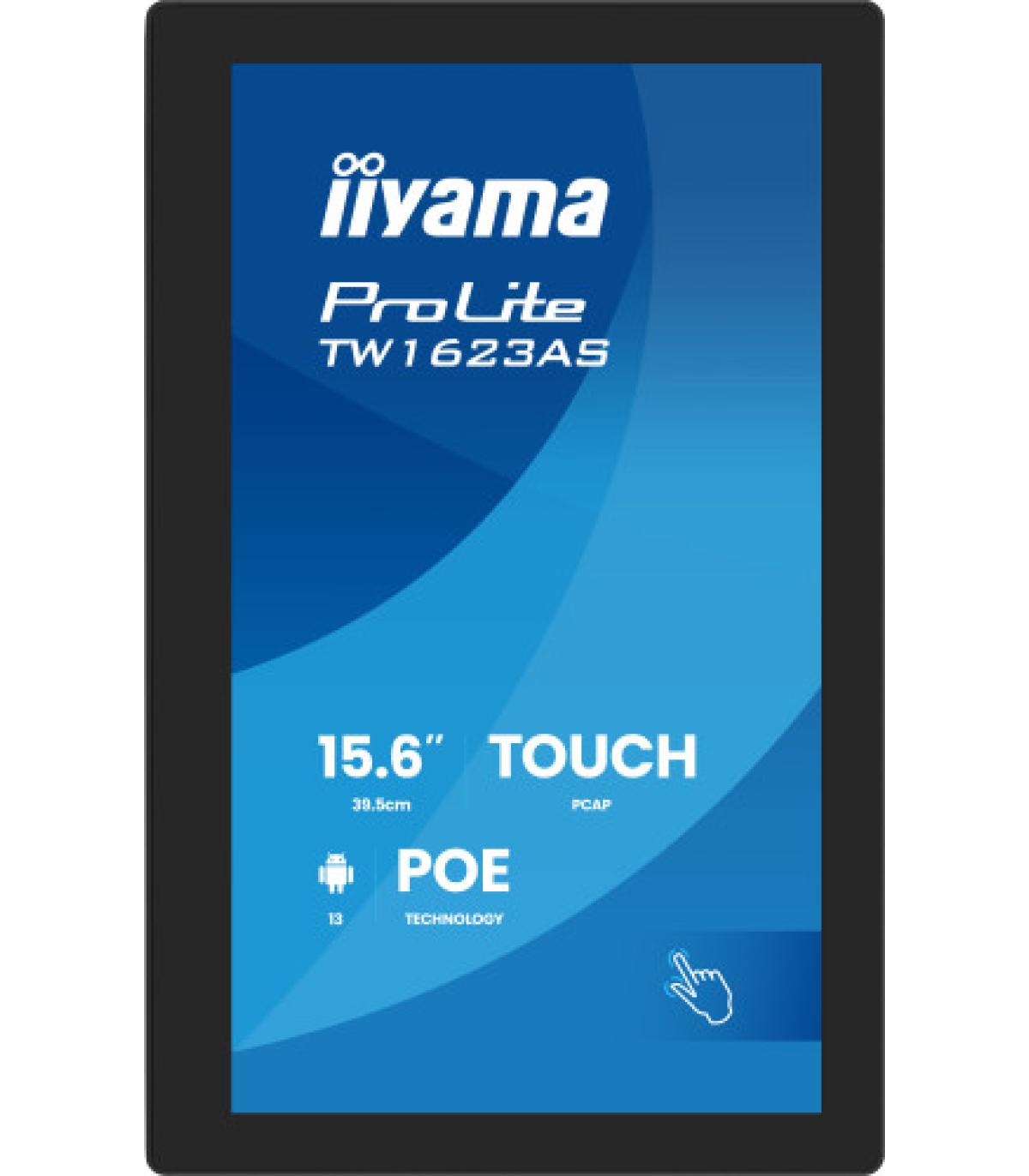 iiyama TW1623AS-B3P. Diseño de producto: Panel plano interactivo. Diagonal de la pantalla: 39,6 cm (15.6"), Tecnología de visualización: LED, Resolución de la pantalla: 1920 x 1080 Pixeles, Brillo de pantalla: 450 cd / m², Tipo HD: Full HD, Pantalla táctil. Wifi. Horas de funcionamiento (horas/días): 24/7. Sistema operativo instalado: Android. Color del producto: Negro