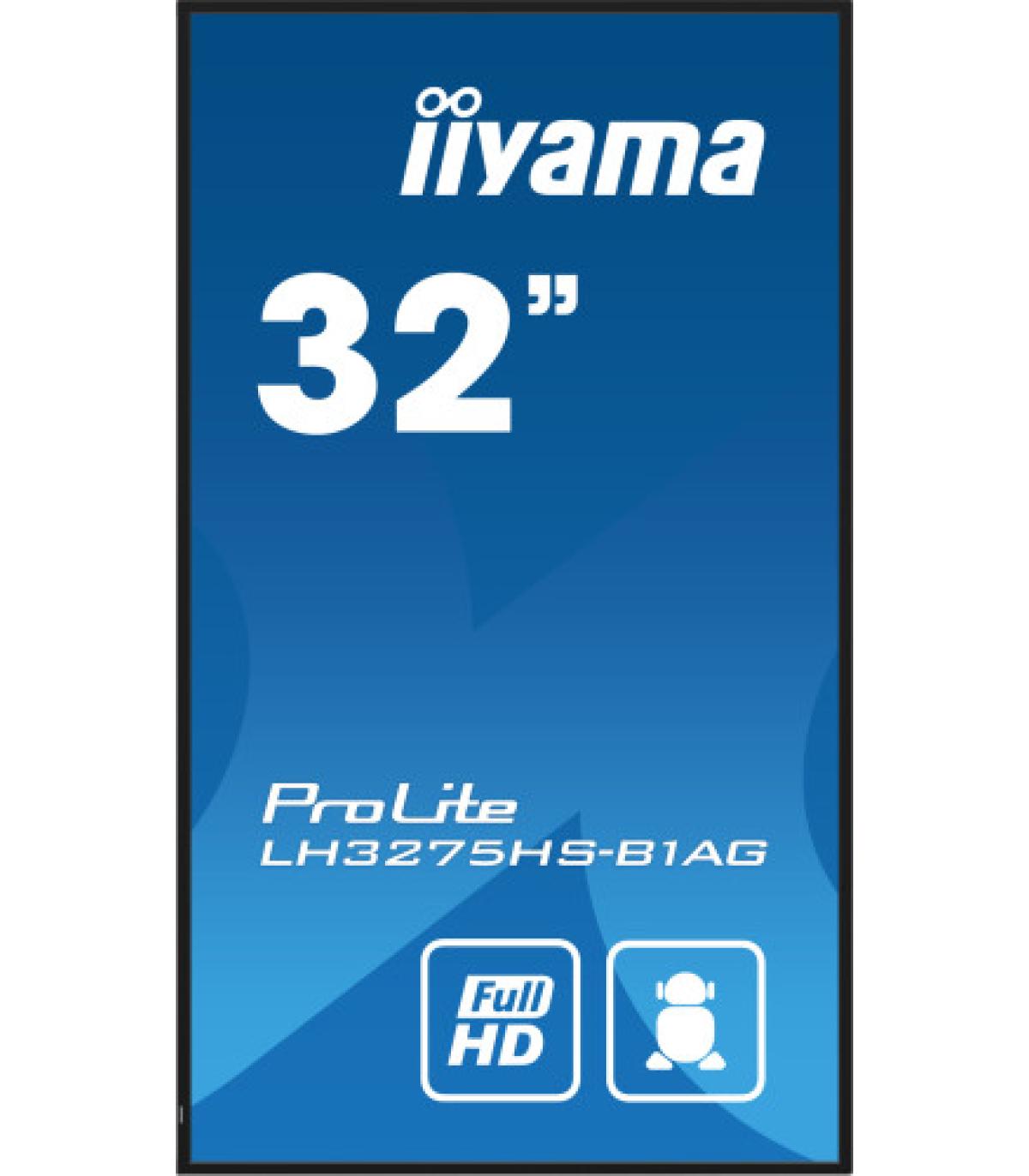 iiyama ProLite. Diseño de producto: Pantalla plana para señalización digital. Diagonal de la pantalla: 81,3 cm (32"), Tecnología de visualización: LCD, Resolución de la pantalla: 1920 x 1080 Pixeles, Brillo de pantalla: 500 cd / m², Tipo HD: Full HD. Wifi. Horas de funcionamiento (horas/días): 24/7. Sistema operativo instalado: Android 11. Color del producto: Negro