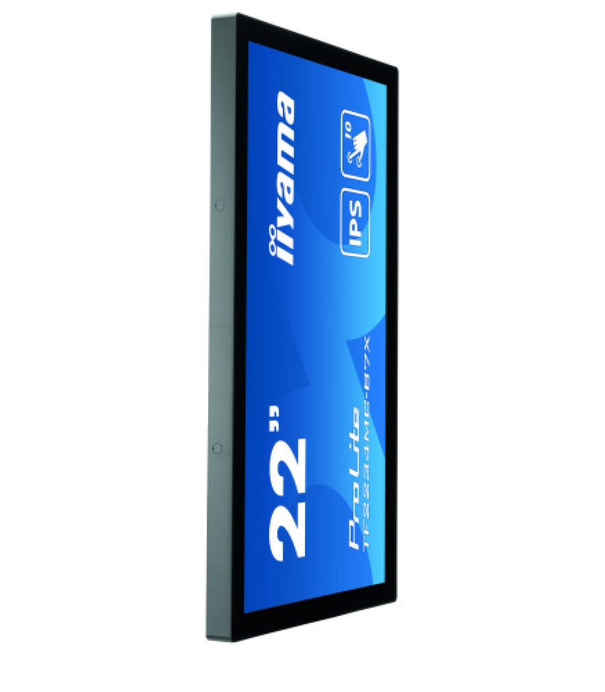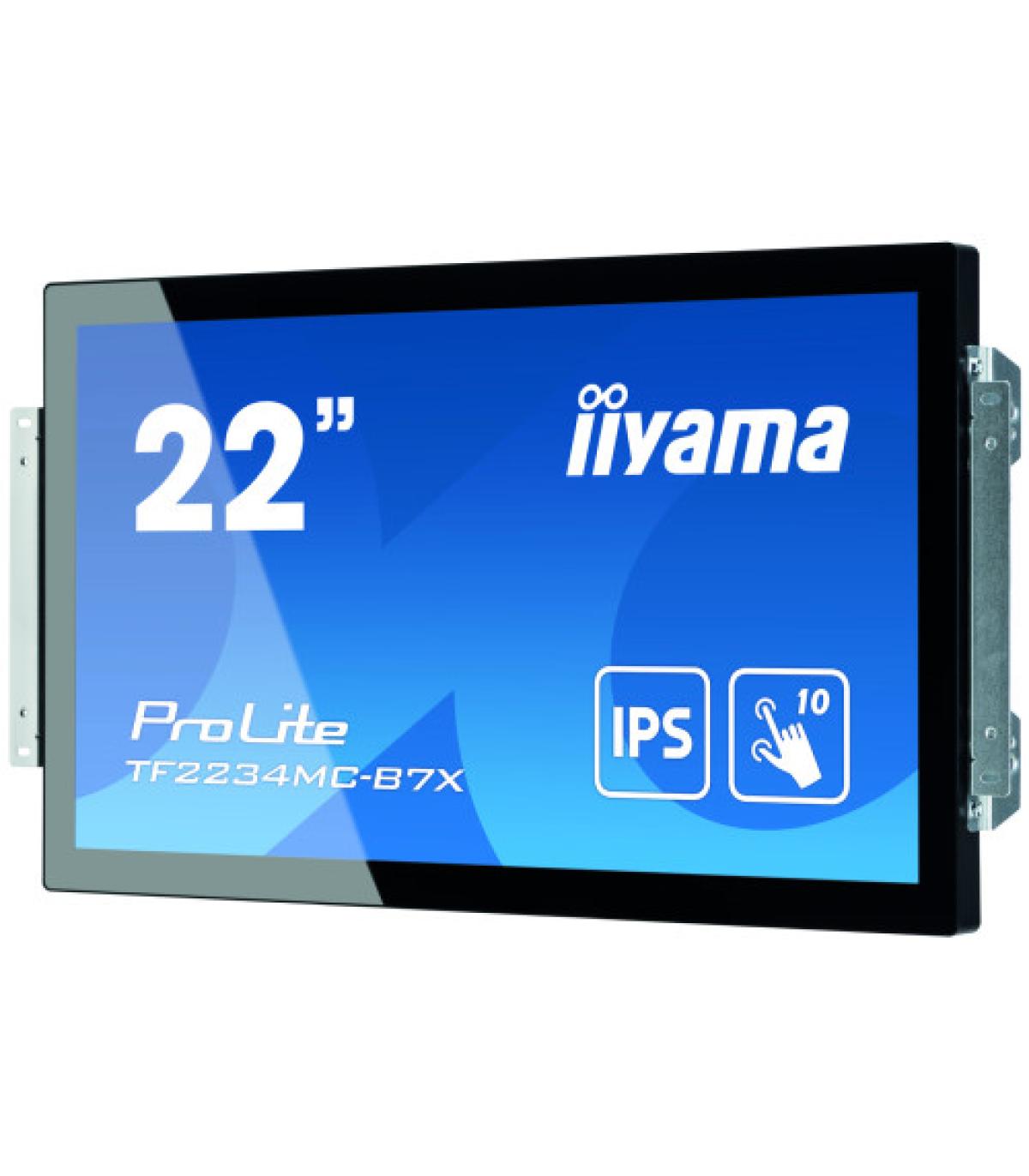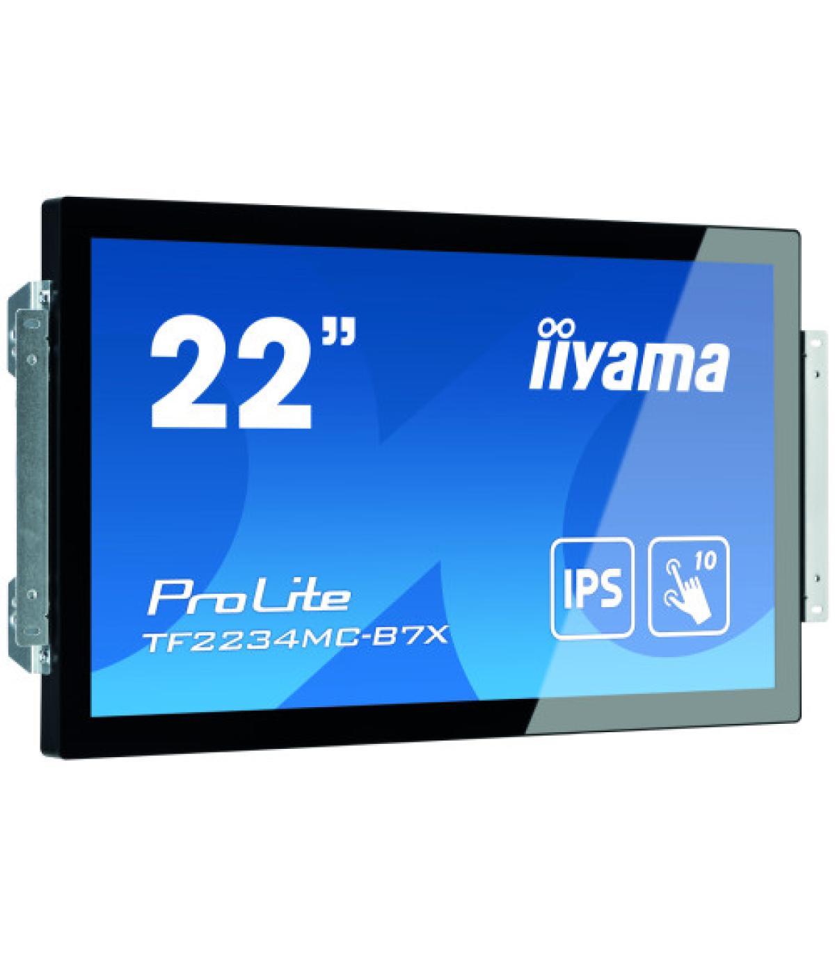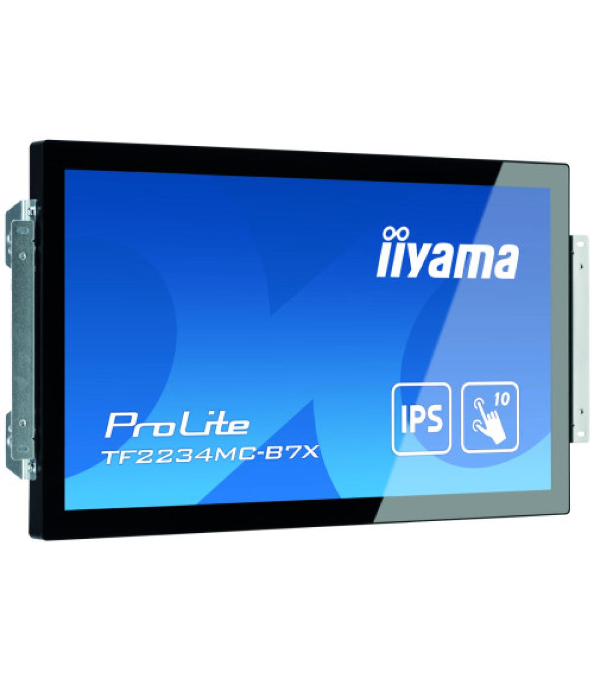 iiyama ProLite TF2234MC-B7X. Diagonal de la pantalla: 54,6 cm (21.5"), Brillo de pantalla: 350 cd / m², Tipo HD: Full HD. Color del producto: Negro, Grosor del cristal: 1,5 mm, Dureza de la superficie: 7H. Tecnología táctil: Multi-touch, Tecnología touchscreen: Sistema capacitivo proyectado, Tipo de pantalla táctil: Multi-usuario. Interfaz de panel de montaje: 100 x 100 mm, Colocación soportada: Horizontal/Vertical. Clase de eficiencia de energía: F, Tipo de fuente de alimentación: CC, Consumo energético: 18 W