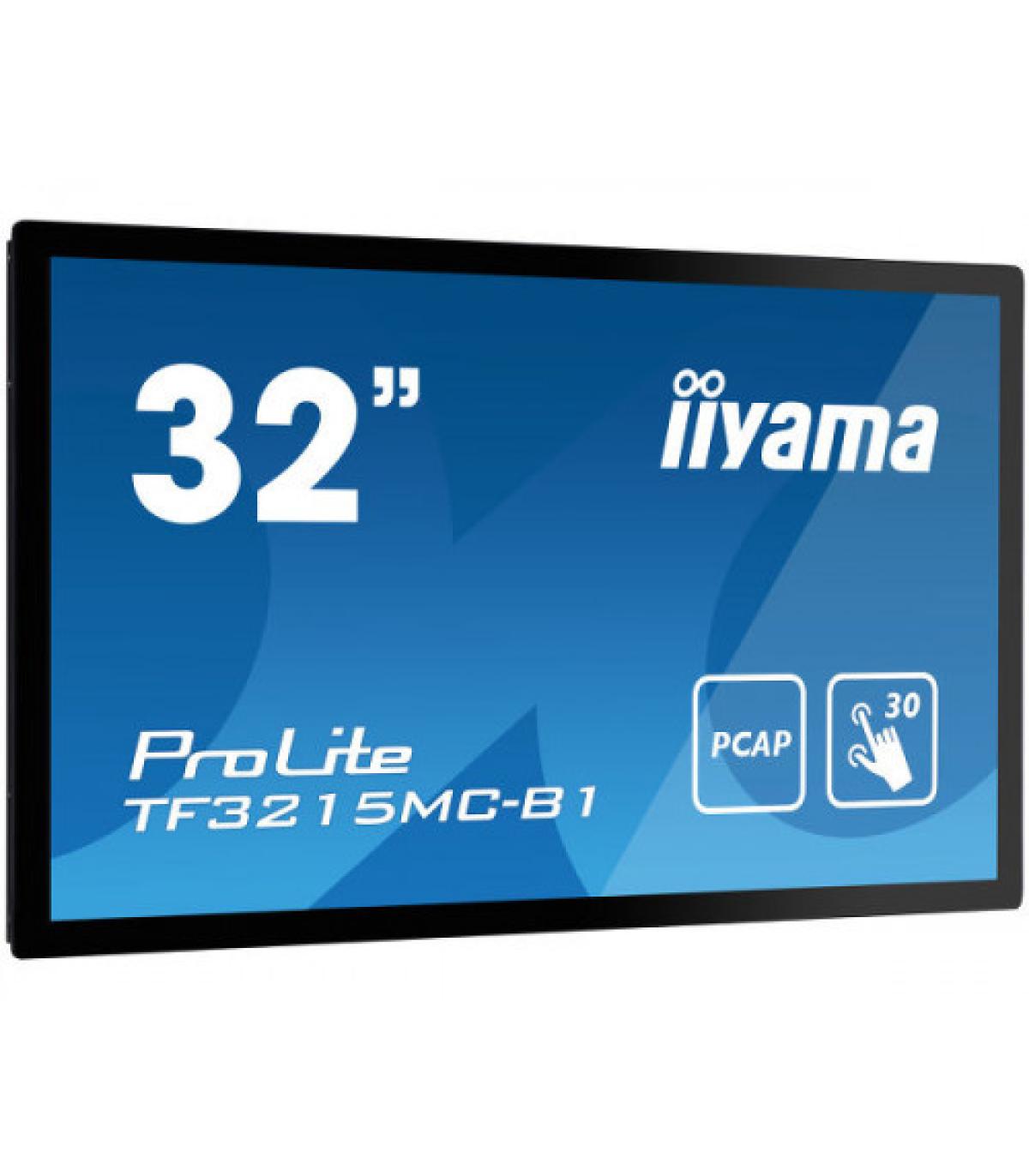 iiyama ProLite TF3215MC-B1. Diagonal de la pantalla: 81,3 cm (32"), Brillo de pantalla: 500 cd / m², Tipo HD: Full HD. Color del producto: Negro, Material de la carcasa: Metal, Grosor del cristal: 3 mm. Tecnología táctil: Single-touch, Tecnología touchscreen: Sistema capacitivo proyectado, Tipo de pantalla táctil: Quiosco. Consumo energético: 43 W, Consumo de energía (inactivo): 2 W. Ancho (sin base): 74 cm, Profundidad (sin base): 6,1 cm, Altura (sin base): 43,4 cm