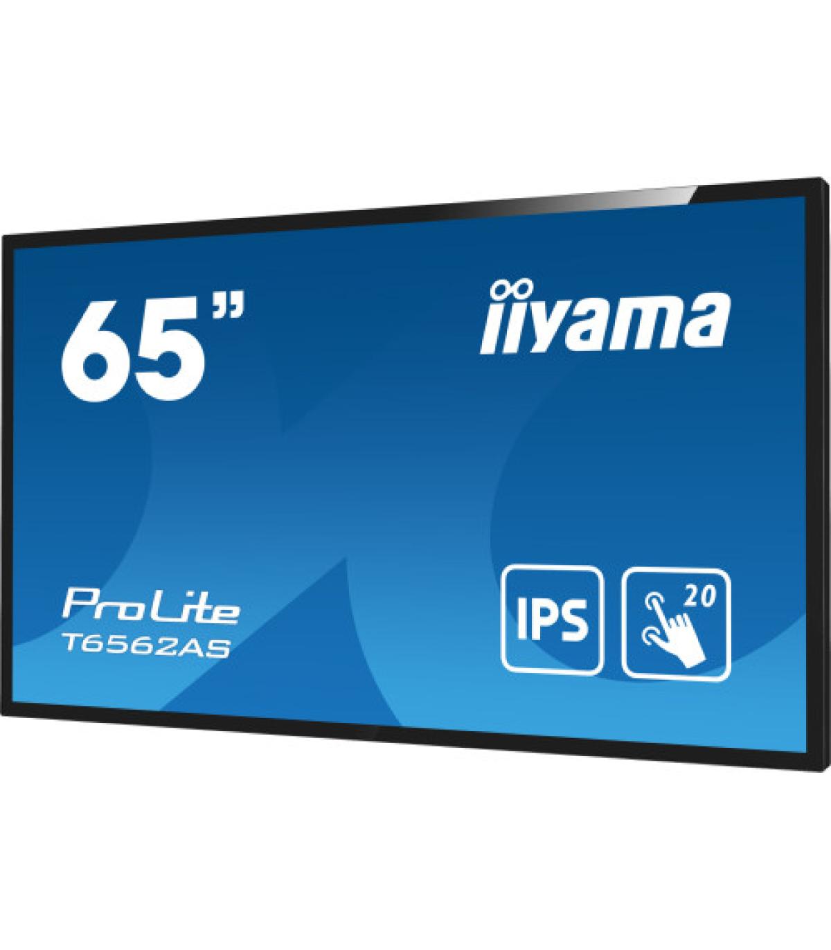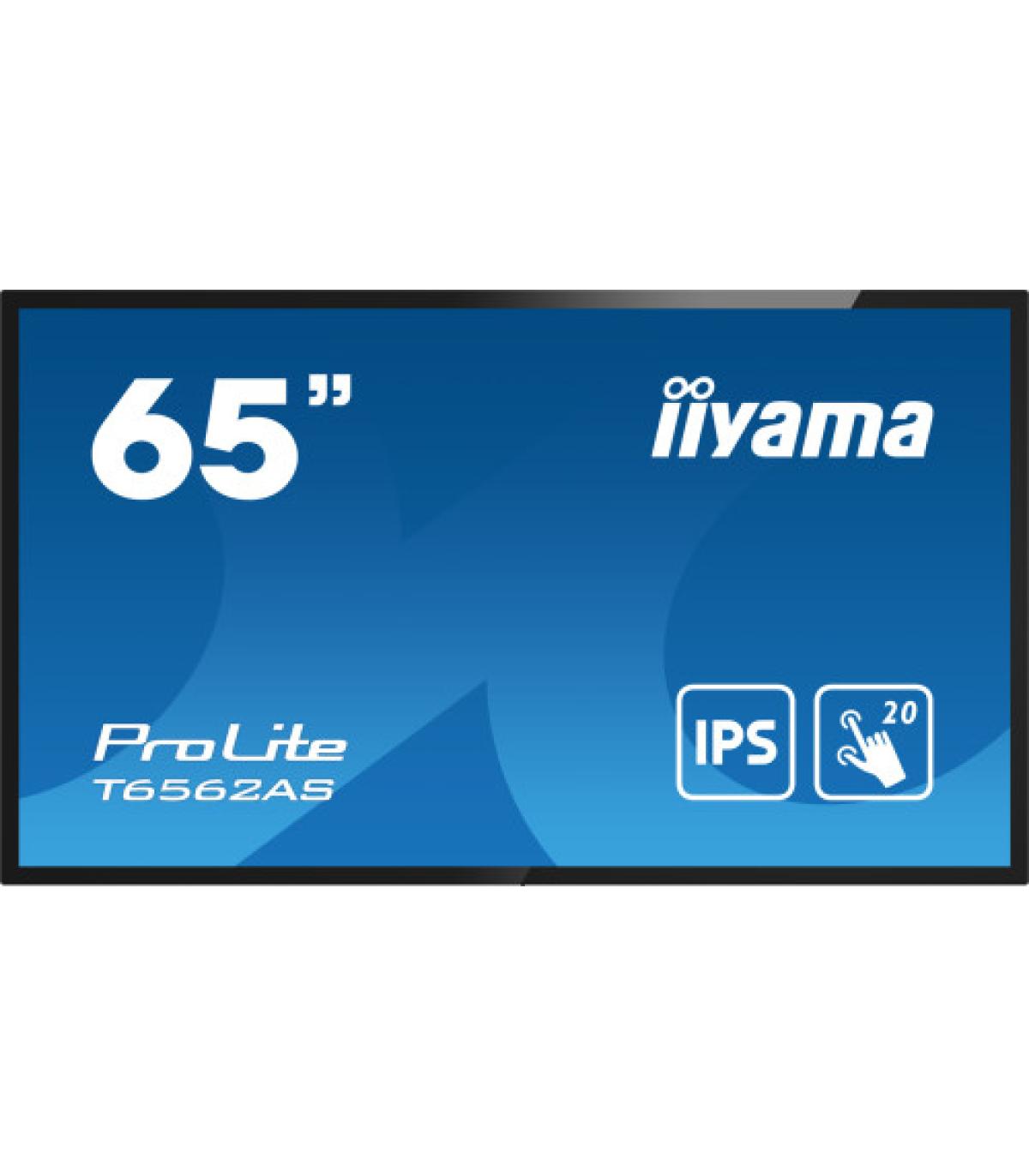 iiyama T6562AS-B1. Diseño de producto: Panel plano interactivo. Diagonal de la pantalla: 163,8 cm (64.5"), Tecnología de visualización: IPS, Resolución de la pantalla: 3840 x 2160 Pixeles, Brillo de pantalla: 500 cd / m², Tipo HD: 4K Ultra HD, Pantalla táctil. Horas de funcionamiento (horas/días): 24/7. Sistema operativo instalado: Android 8.0. Color del producto: Negro