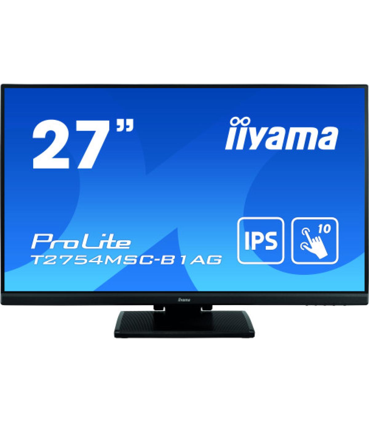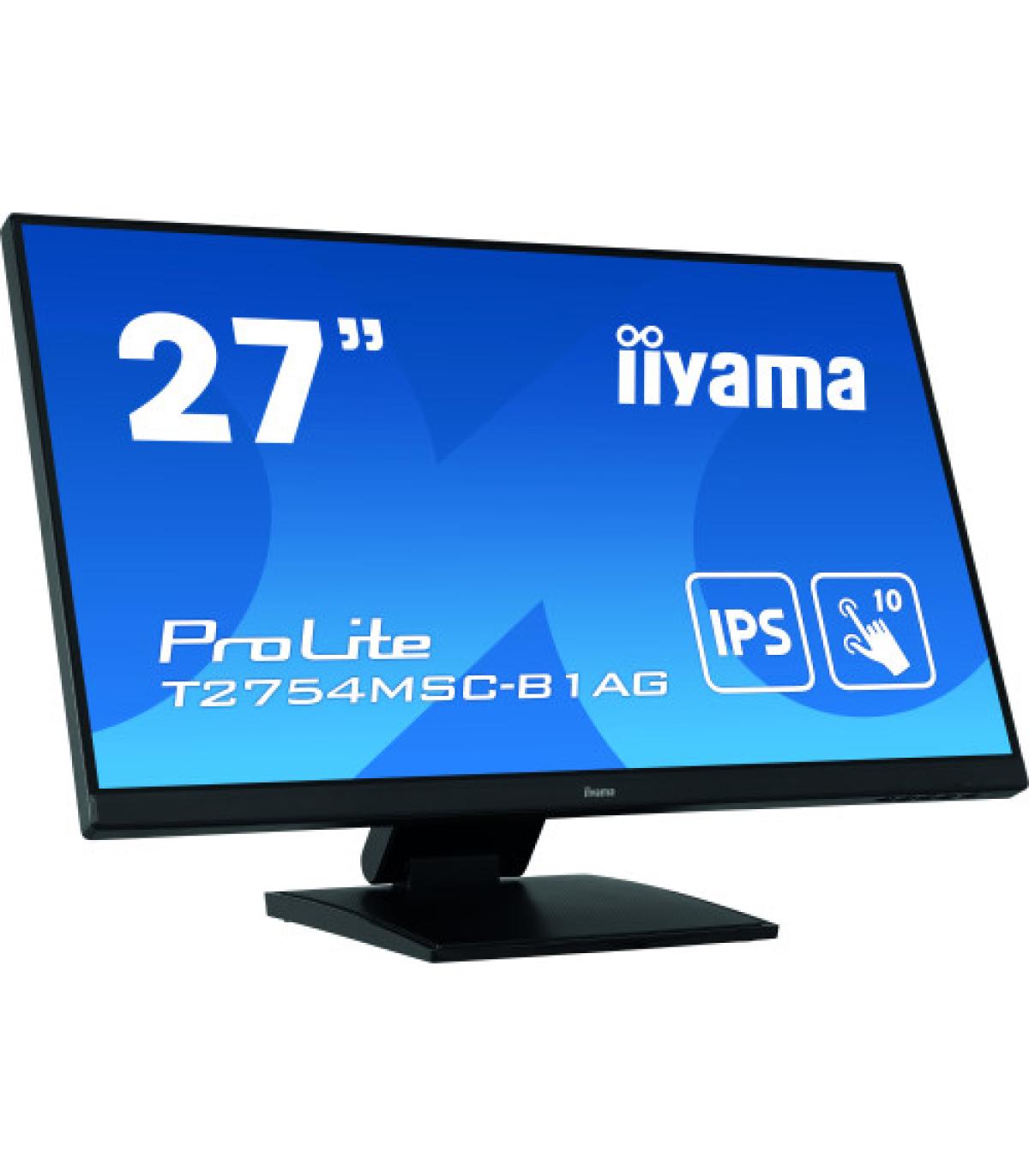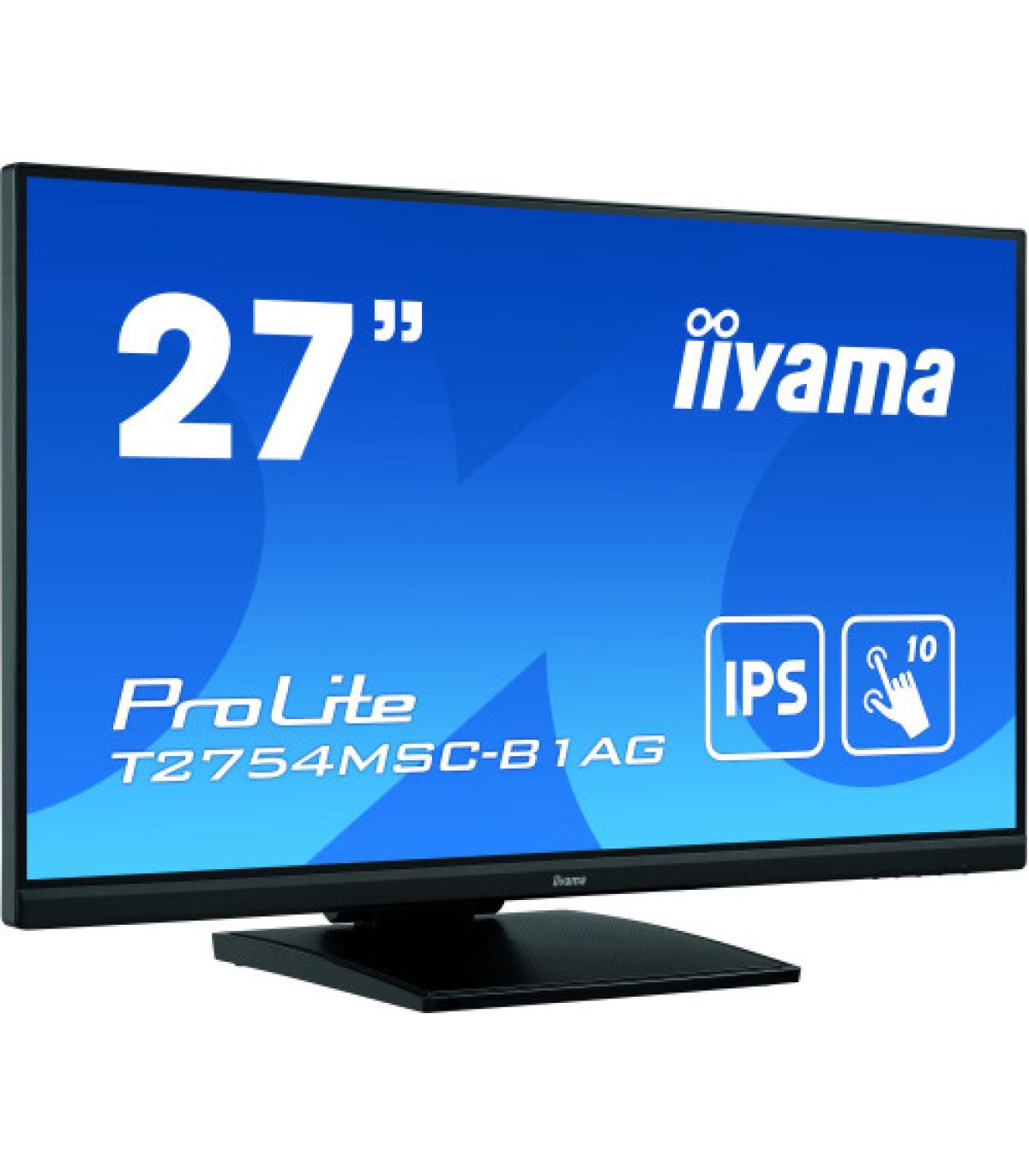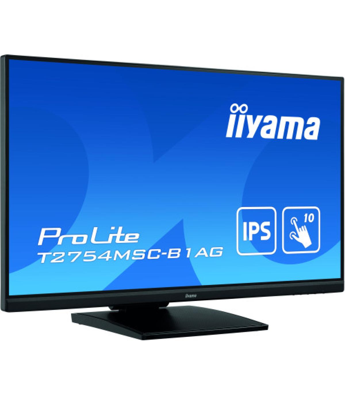 iiyama ProLite T2754MSC-B1AG. Diagonal de la pantalla: 68,6 cm (27"), Brillo de pantalla: 300 cd / m², Tipo HD: Full HD. Color del producto: Negro. Tecnología táctil: Multi-touch, Tecnología touchscreen: Sistema capacitivo proyectado, Tipo de pantalla táctil: Multi-usuario. Ángulo de inclinación: 5 - 90°, Ajuste de altura: 29,8 cm, Interfaz de panel de montaje: 100 x 100 mm. Clase de eficiencia energética (SDR): F, Consumo de energía (SDR) por 1000 horas: 26 kWh, Consumo energético: 27 W