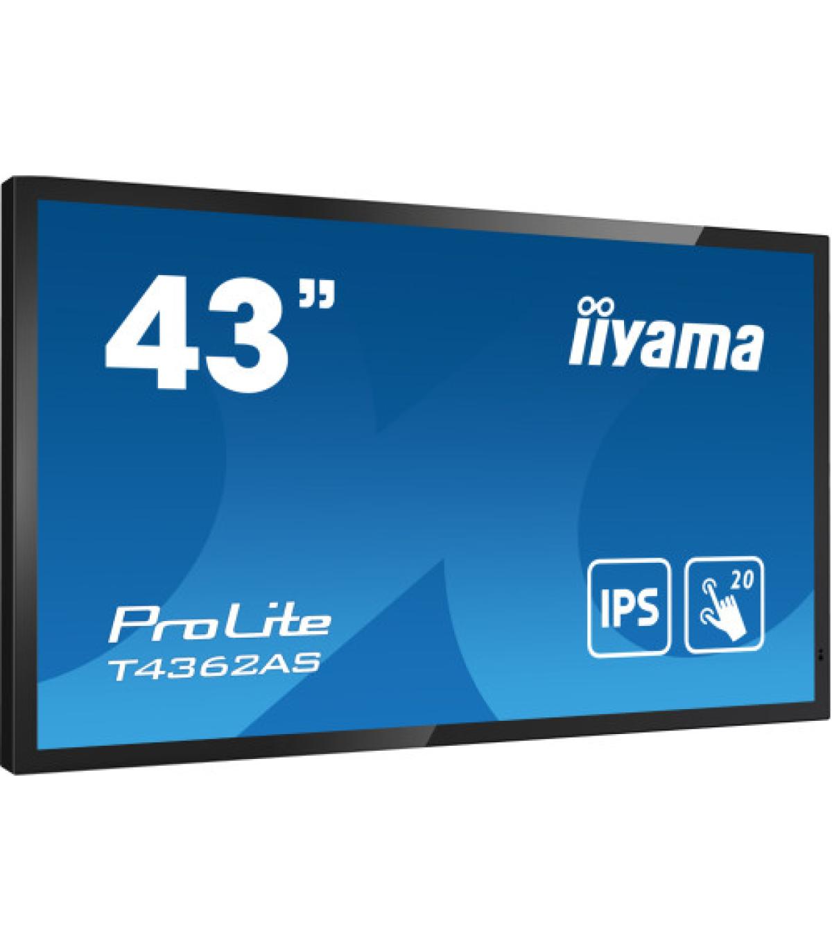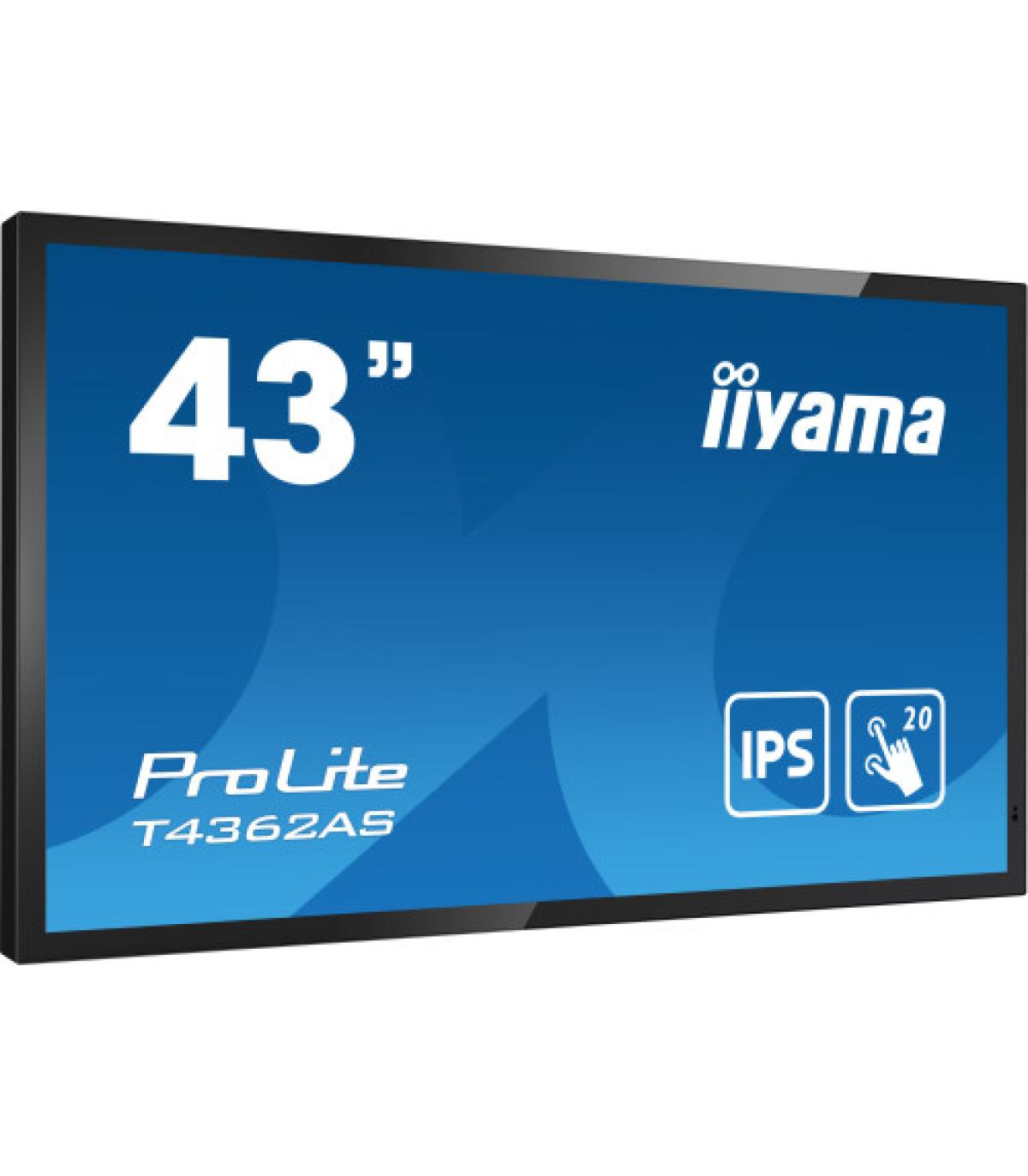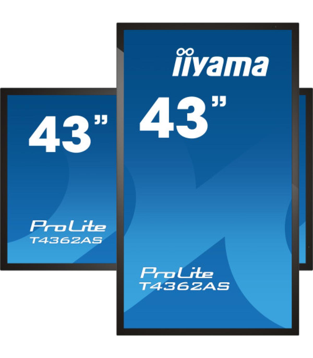 iiyama T4362AS-B1. Diseño de producto: Panel plano interactivo. Diagonal de la pantalla: 108 cm (42.5"), Tecnología de visualización: IPS, Resolución de la pantalla: 3840 x 2160 Pixeles, Brillo de pantalla: 500 cd / m², Tipo HD: 4K Ultra HD, Pantalla táctil. Horas de funcionamiento (horas/días): 24/7. Sistema operativo instalado: Android 8.0. Color del producto: Negro