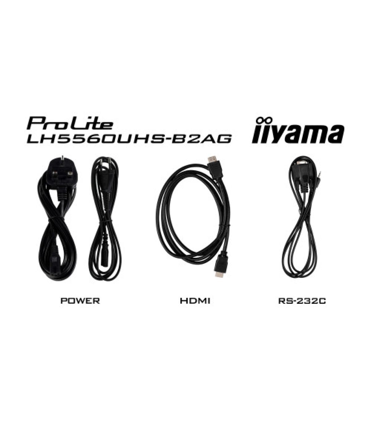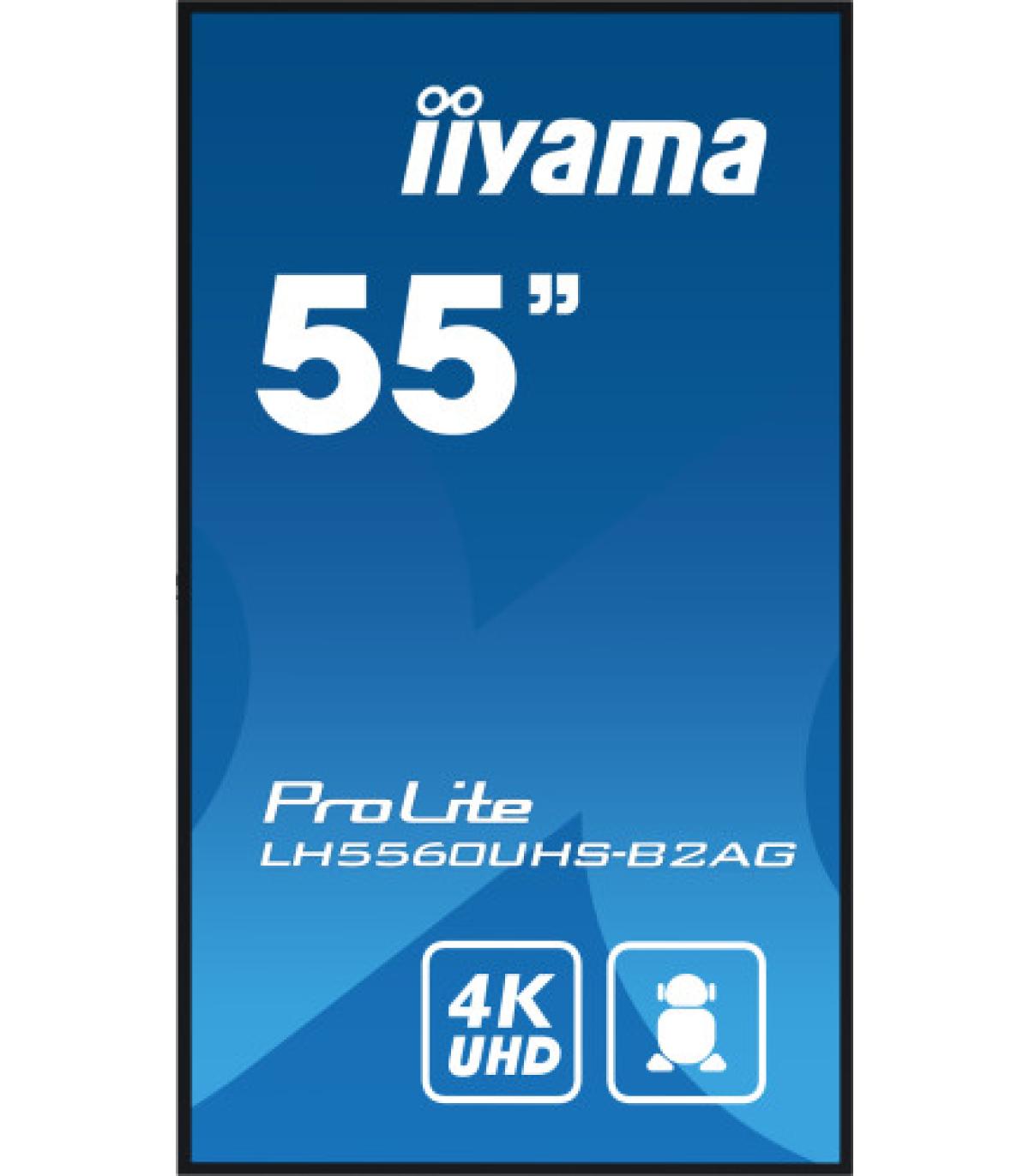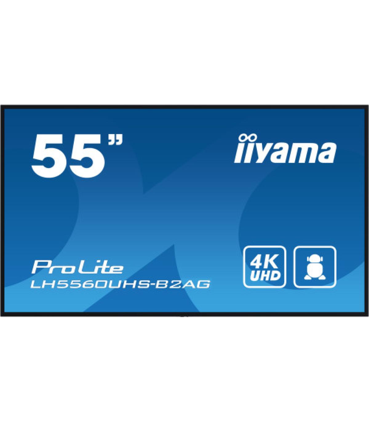 iiyama LH5560UHS-B2AG. Diseño de producto: Pizarra de caballete digital. Diagonal de la pantalla: 139,7 cm (55"), Tecnología de visualización: LED, Resolución de la pantalla: 3840 x 2160 Pixeles, Brillo de pantalla: 500 cd / m², Tipo HD: 4K Ultra HD. Wifi. Horas de funcionamiento (horas/días): 24/7. Sistema operativo instalado: Android 11. Color del producto: Negro