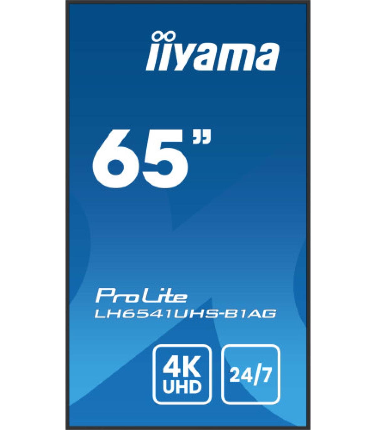 iiyama LH6541UHS-B1AG. Diagonal de la pantalla: 163,8 cm (64.5"), Tecnología de visualización: LCD, Resolución de la pantalla: 3840 x 2160 Pixeles, Brillo de pantalla: 500 cd / m², Tipo HD: 4K Ultra HD. Horas de funcionamiento (horas/días): 24/7. Color del producto: Negro