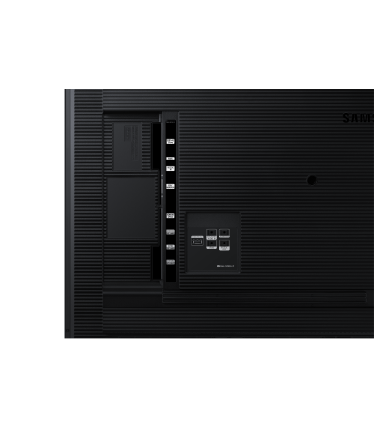 Samsung QMB-T. Diseño de producto: Pantalla plana para señalización digital. Diagonal de la pantalla: 139,7 cm (55"), Resolución de la pantalla: 3840 x 2160 Pixeles, Brillo de pantalla: 400 cd / m², Pantalla táctil. Wifi. Sistema operativo instalado: Tizen 6.5. Color del producto: Negro