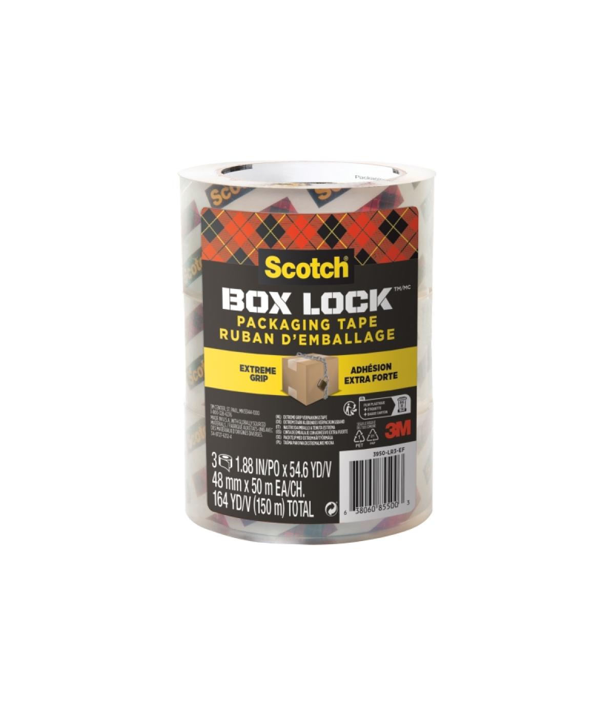 La cinta de embalaje transparente Scotch® Box Lock™ tiene un potente poder de agarre que se adhiere instantáneamente en la mayoría de las cajas, incluidas las de difícil pegado en cajas 100 % recicladas. Su nuevo adhesivo avanzado garantiza un sellado seguro durante una manipulación brusca y con temperaturas extremas en exteriores.